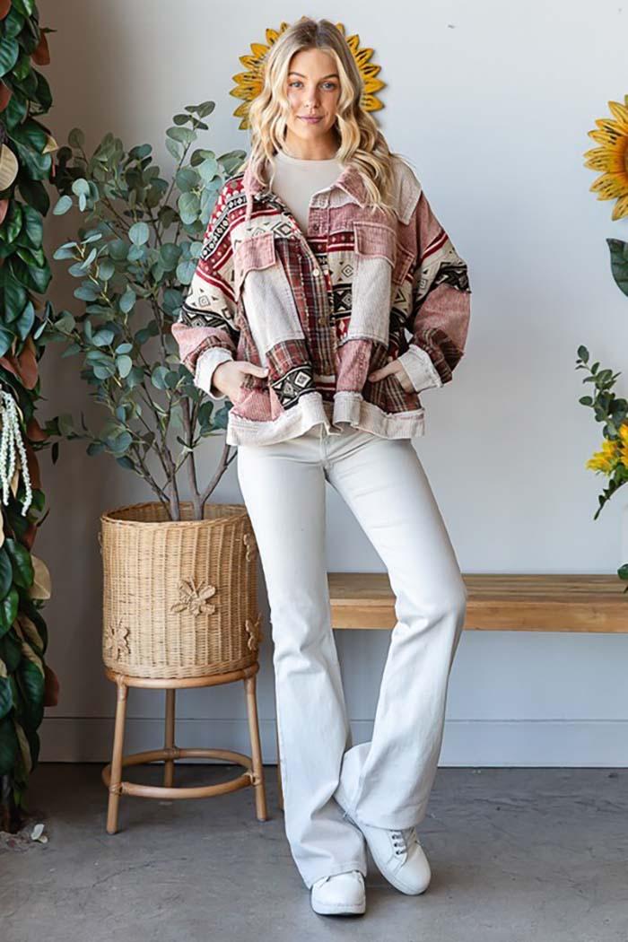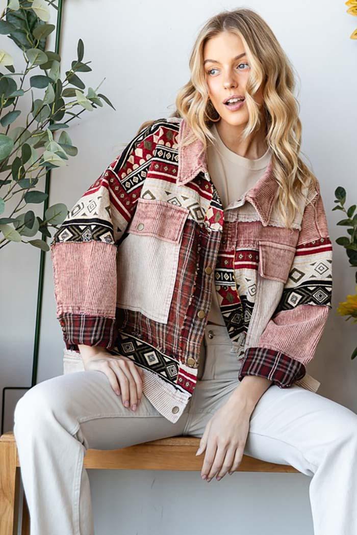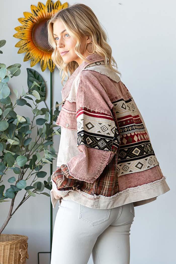 Mineral Washed Mixed Media Button Corduroy Jacket