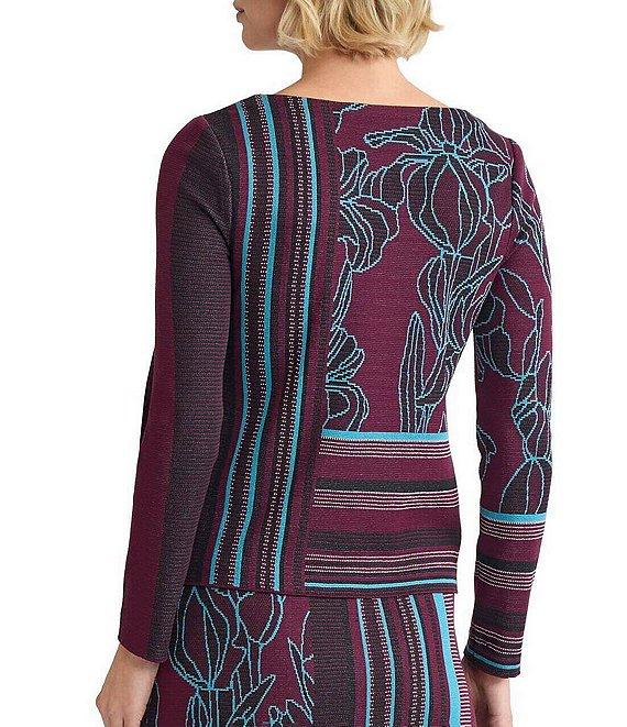 Ming Wang Coordinating Multi-Pattern Jacquard Soft Knit Boat Neck Long Sleeve Top