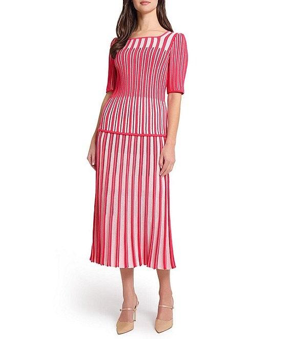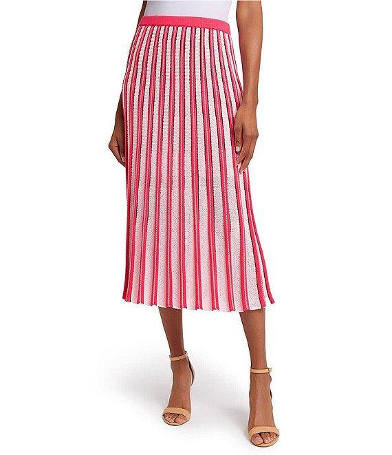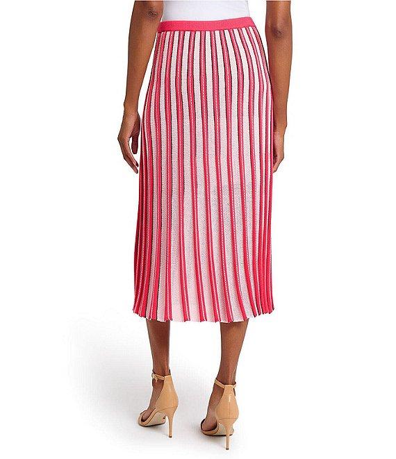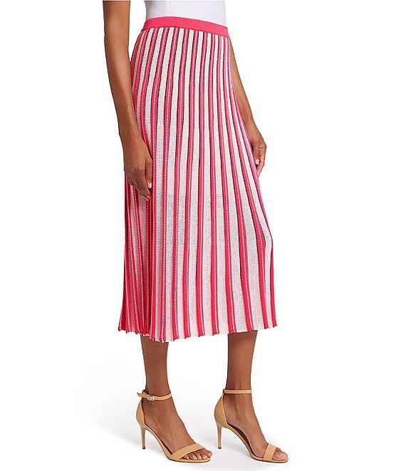 Ming Wang Coordinating Pointelle Striped Ribbed Knit Elastic Waist A-Line Midi Skirt