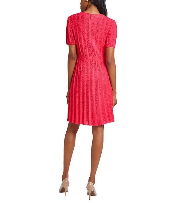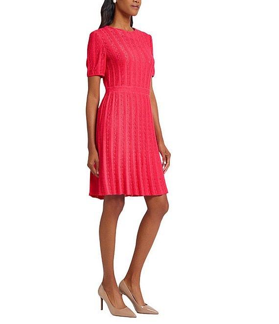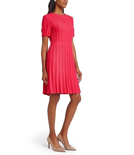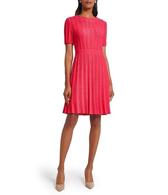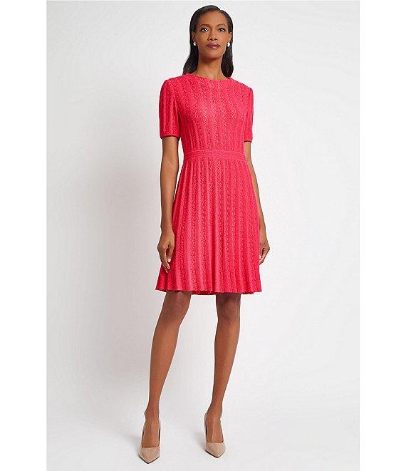 Ming Wang Diamond Pointelle Knit Round Neck Short Sleeve Fit-And-Flare Dress