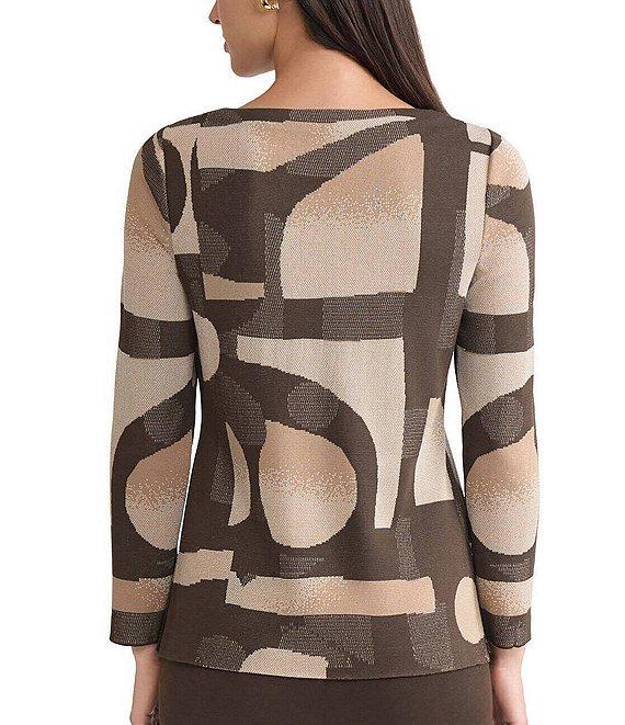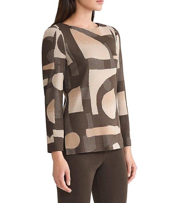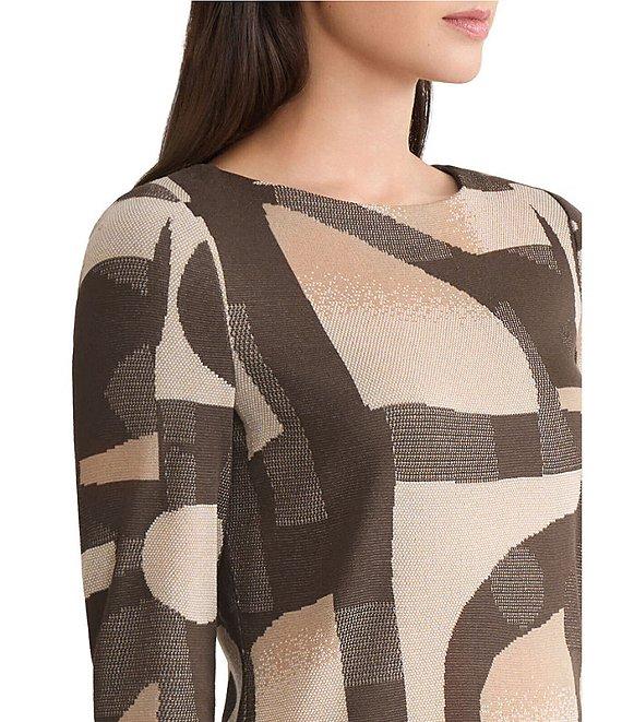Ming Wang Geometric Jacquard Soft Knit Boat Neck Bracelet Sleeve Tunic