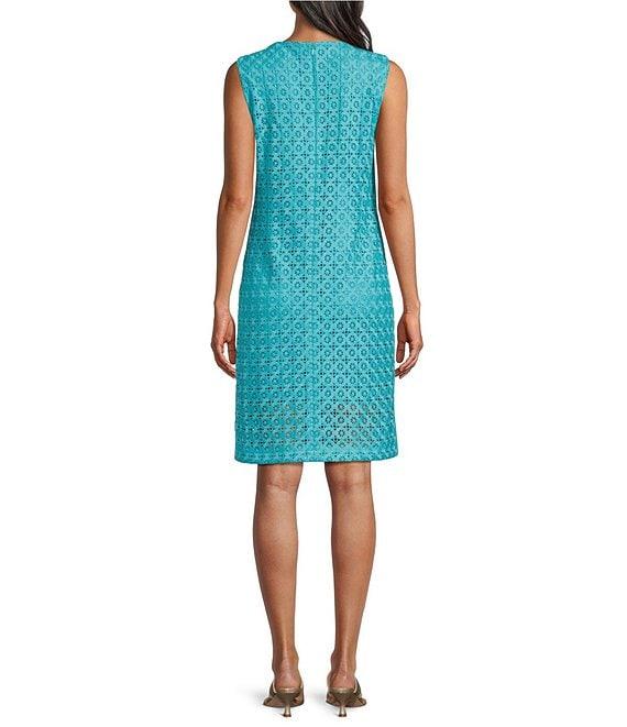 Ming Wang Geometric Lace Cutout Round Neck Sleeveless Dress