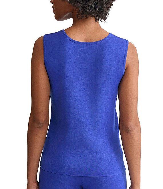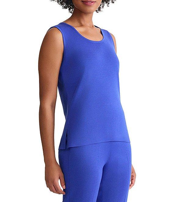 From Ming Wang Petite, this top features: Wrinkle, fade, and stretch-resistant knit fabrication Scoop neckline Sleeveless Straight hemline with side slits Pullover construction Approx. 22" length Acrylic/polyester Machine wash/tumble dry Imported.