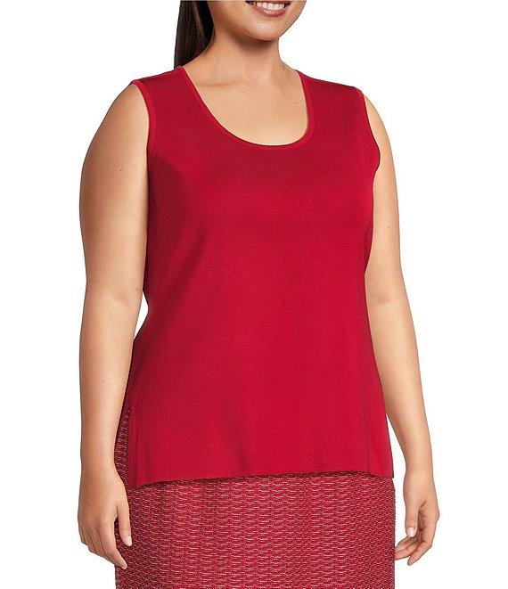Ming Wang Plus Knit Scoop Neck Sleeveless Mid-Length Tank