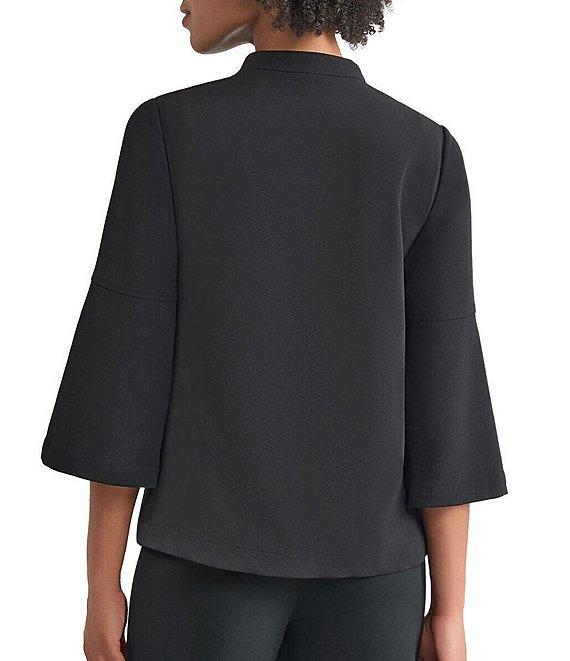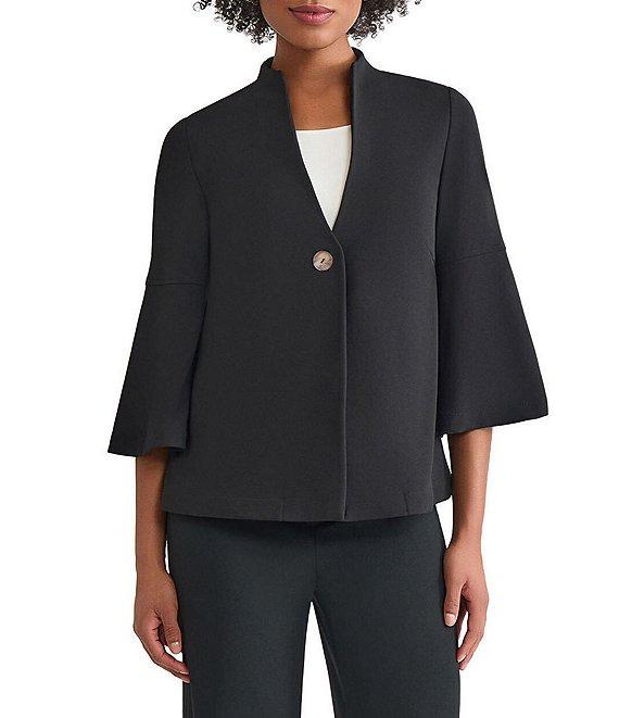 Ming Wang Stretch Crepe Stand Collar V-Neck 3/4 Bell Sleeve Single Button Jacket