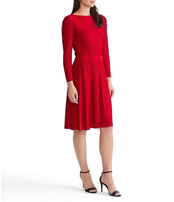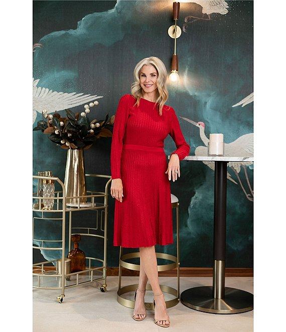 From Ming Wang x Tanya Foster, this dress features: Tonal stitch knit fabrication Fit-and-flare silhouette Boat neckline Long sleeves Straight hem Pullover construction Approx. 40" length Rayon/polyester Machine wash Imported.