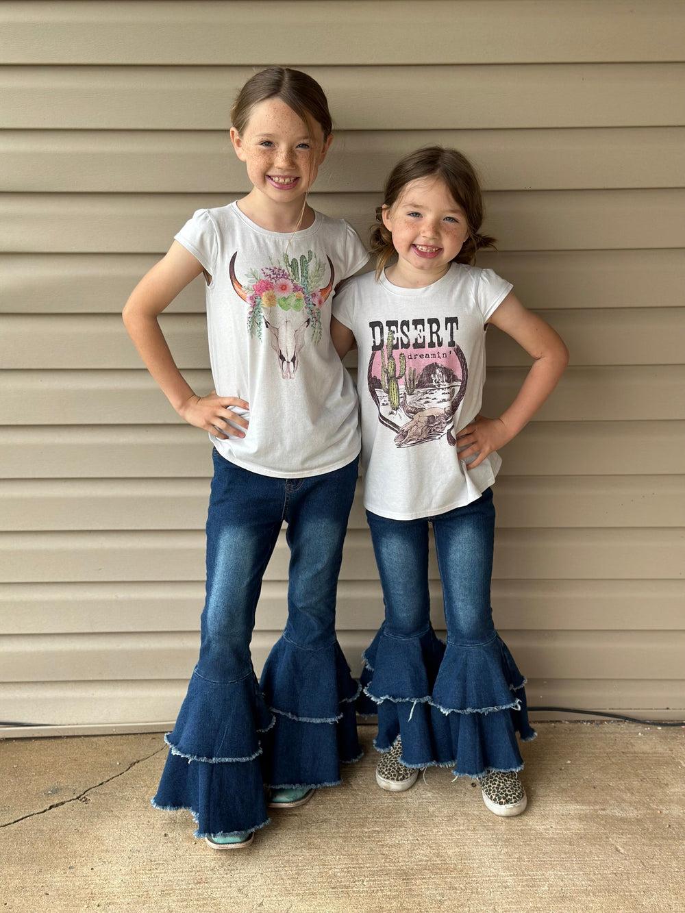Your mini fashionista will be rocking the trendiest jeans around with these cool bell bottoms! With a dark wash and western-style silhouette, these denim fab...