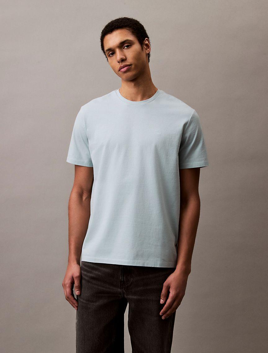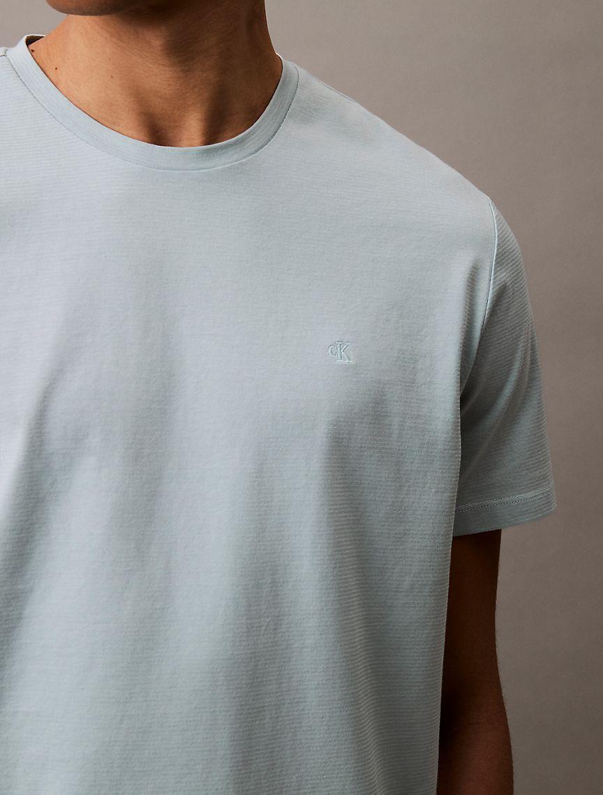 Ever so subtle, this classic fit t-shirt is designed with a mini shadow stripe print throughout. Designed in effortless 100% cotton with an embroidered monogram logo at the chest. Material: 100% Cotton.