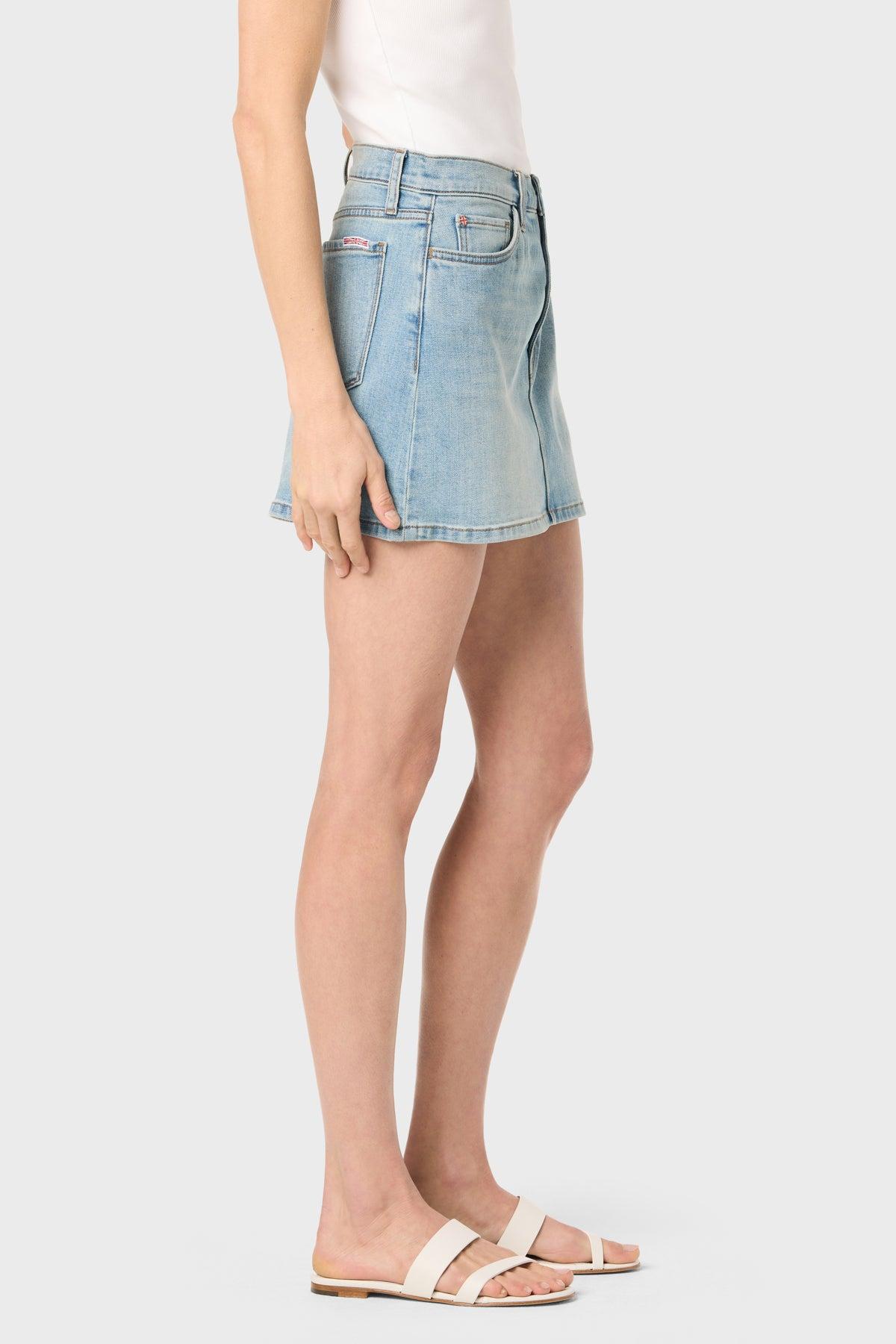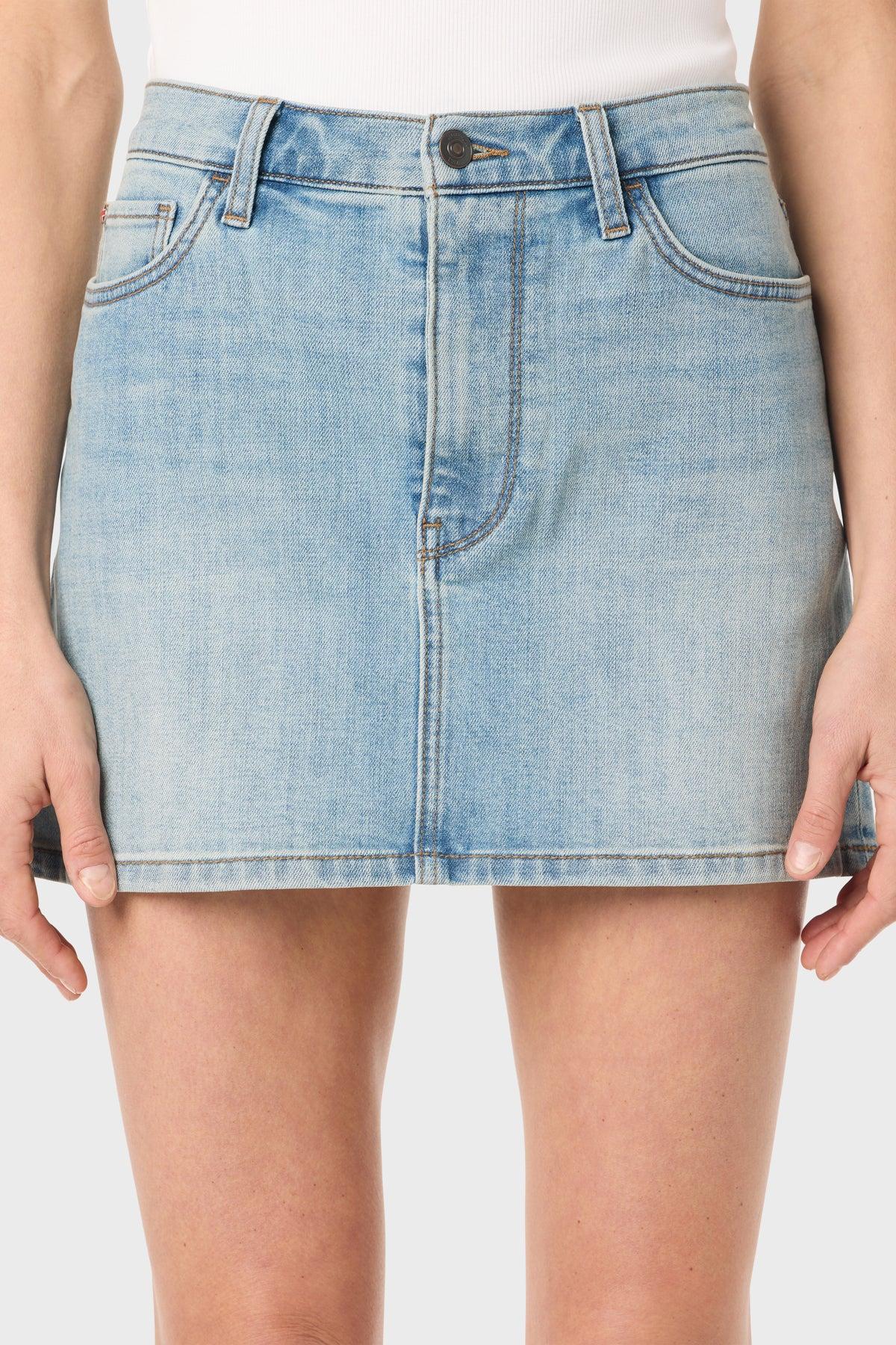 Description This Hudson Jeans miniskirt is cut from structured stretch denim with a washed finish. The five-pocket design and high-rise waist lend a timeless denim look with modern ease. Product Details Center Front Length: 13.5", Center Back Length: 14.5", Waist: 30", Sweep: 39" Fit & Care WOMENS 99% Cotton, 1% DENIM SKIRT