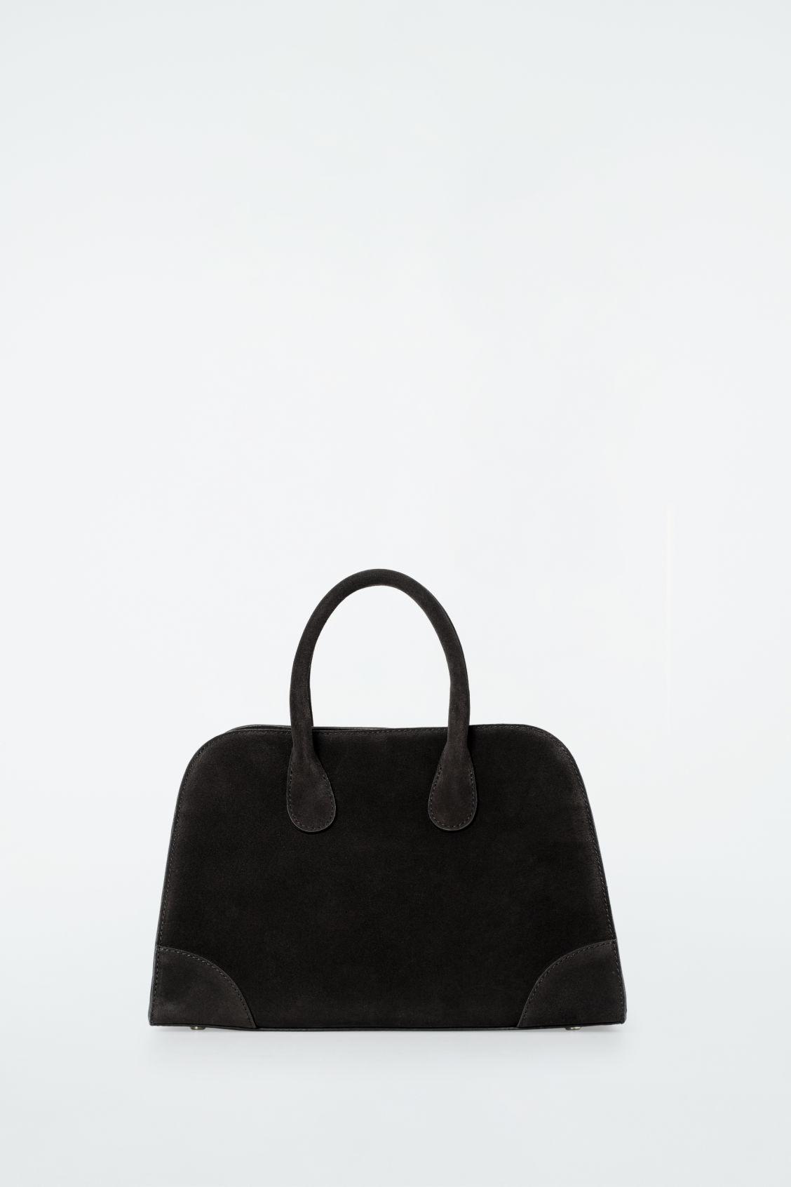 The Studio Bowling Bag is a refined interpretation of a noughties sportswear classic. Crafted from premium suede in a timeless black tone, this mini version has a curved silhouette with bonded edges for longevity and is sized to hold the essentials. Clip closureCOS supports responsible manufacturing via the Leather Working Group Shell: 100% Suede. Excluding trims Height: 9.05", Width: 12.59", Depth: 5.70"