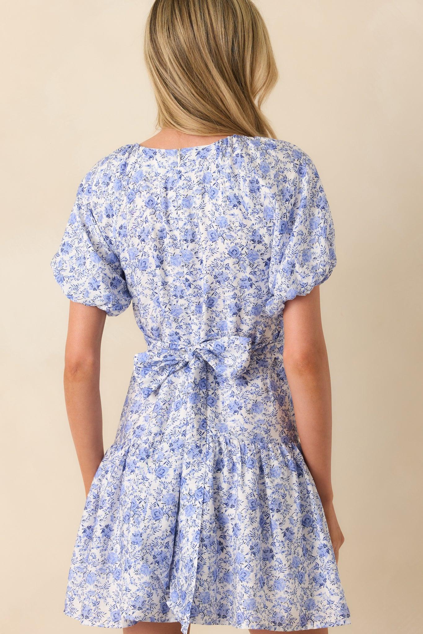 The MINKPINK Blue Floral Print Evelyn Puff Sleeve Mini Dress is made for the kind of plans that feel a little more fun. With a playful spirit and timeless charm, it’s a go-to for brunch dates, baby showers, or any day that calls for something pretty. This mini dress features a blue floral print, v-neckline, elastic shoulder strap inserts, short puff sleeves, elastic cuffs, front ruched elastic panel insert, attached self-tie bow back waist, and a hidden back zipper.