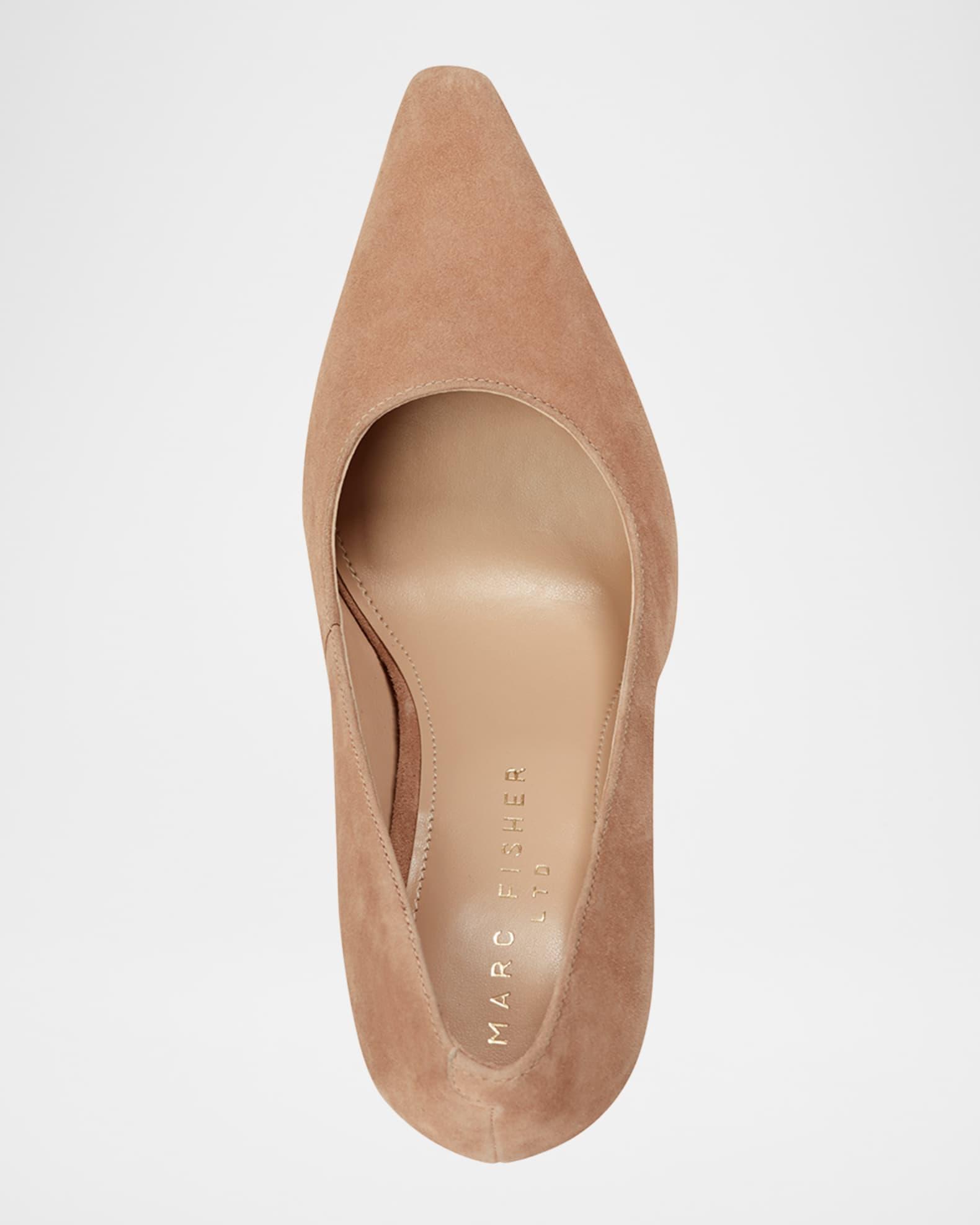 Marc Fisher LTD "Minny" suede dress pumps 3.25 in / 85 mm tapered block heel Pointed toe Slip-on style Manmade outsole Lining: Synthetic Spot clean Imported Shipping Direct from Vendor, usually ships within 45 business days.