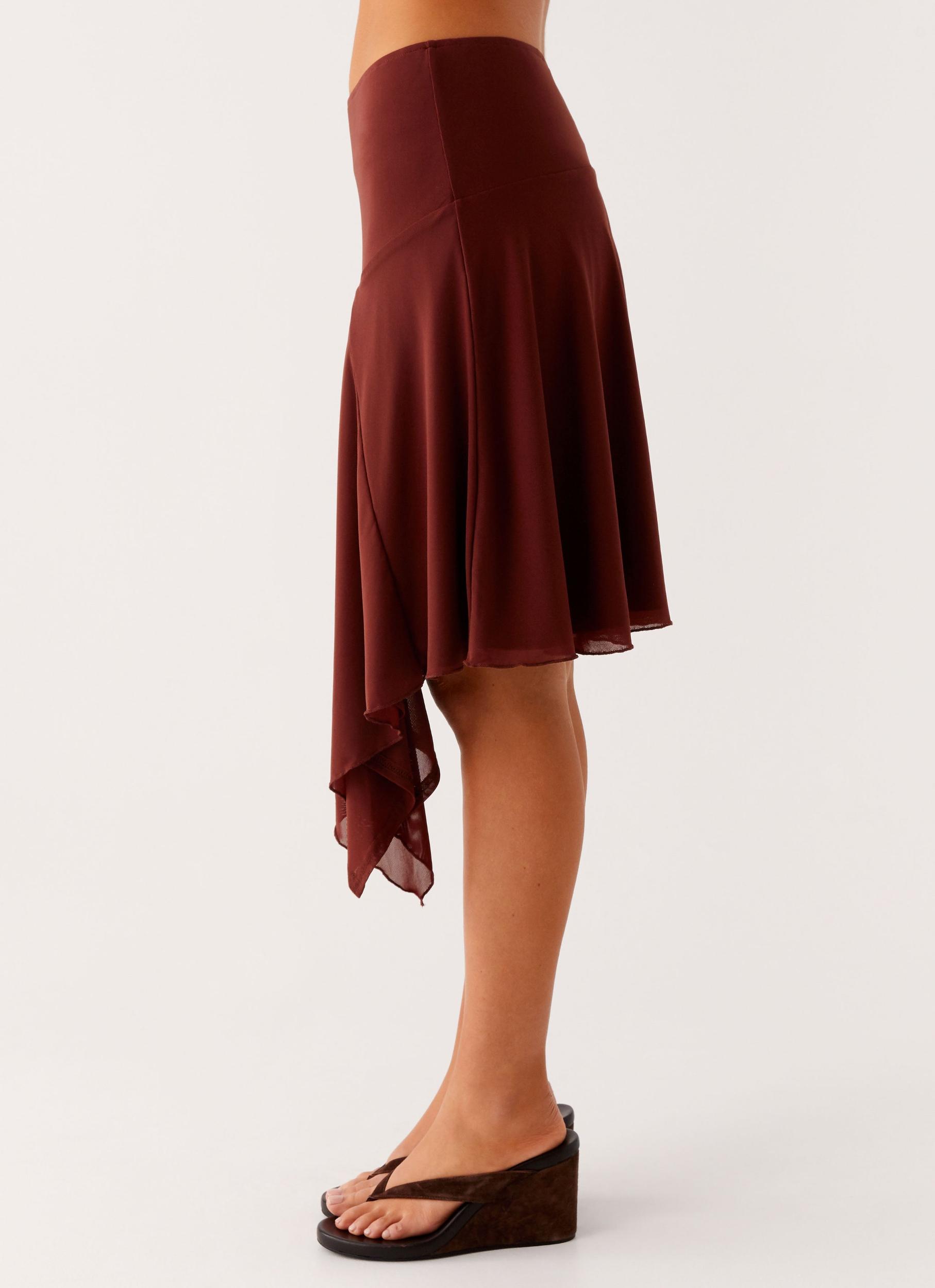 Peppermayo Exclusive The Mirage Midi Skirt is made for golden hour and beyond. Crafted from stretch mesh, it features a flattering elasticated waistband, asymmetrical hemline, and full lining for a sleek, body-skimming fit. - Midi length- Elasticated waistband- Asymmetrical hemline- Fully lined- Stretch mesh- Fabric: 95% Polyester, 5% Spandex, L: 100% Polyester Size AU 8 / US 4 garment measurements: Waist: 74 cm / 29.13 inHip: 80 cm / 31.5 inLength: 53 cm / 20.87 in Yasmin is 174cm and wearing a size AU 6 / and US 2
