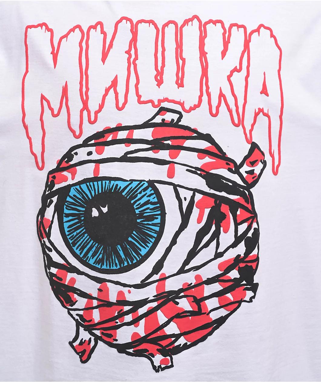 Utilizing puff-printed graphics on the front for a textured 3D effect, Mishka introduces the Mummy t-shirt in a clean white midweight cotton blend. Showcasing the brand's iconic eyeball logo wrapped in bandages for a Mummified look, the front of the