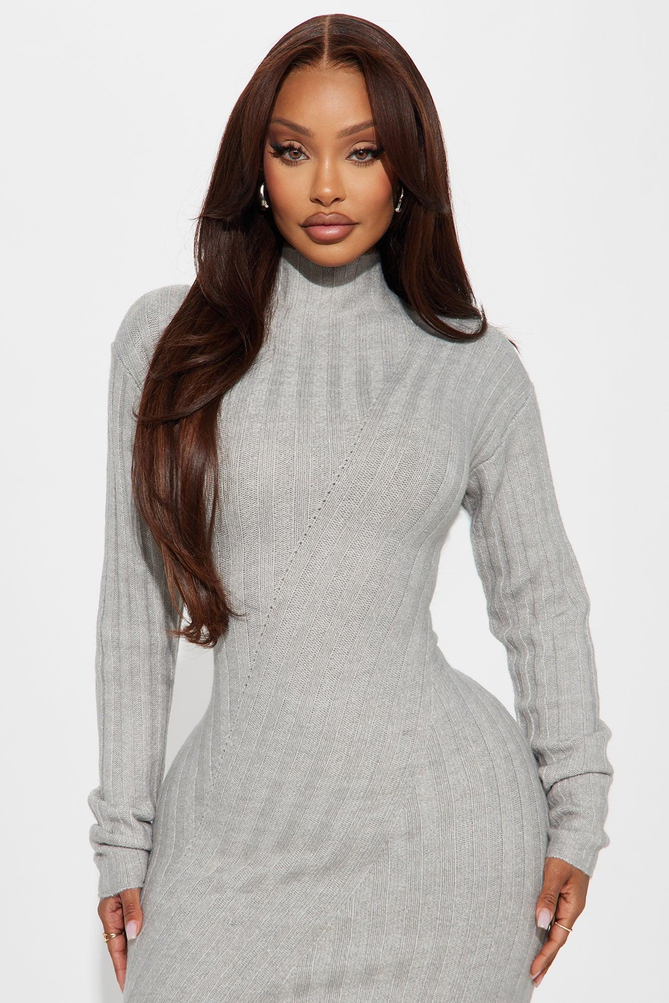 Miss Chic Sweater Midi Dress - Heather Grey