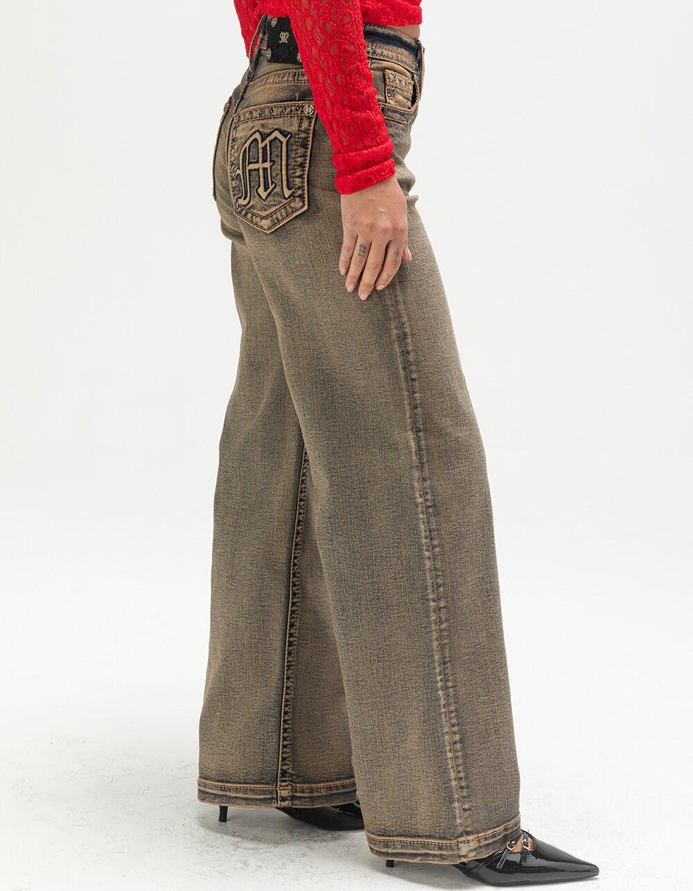 MISS ME Womens High Rise Wide Leg Jeans - Dark Wash