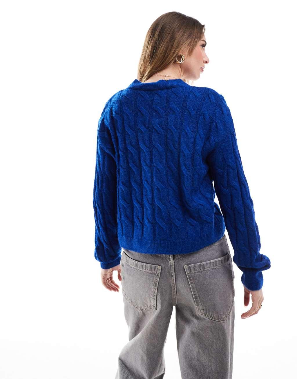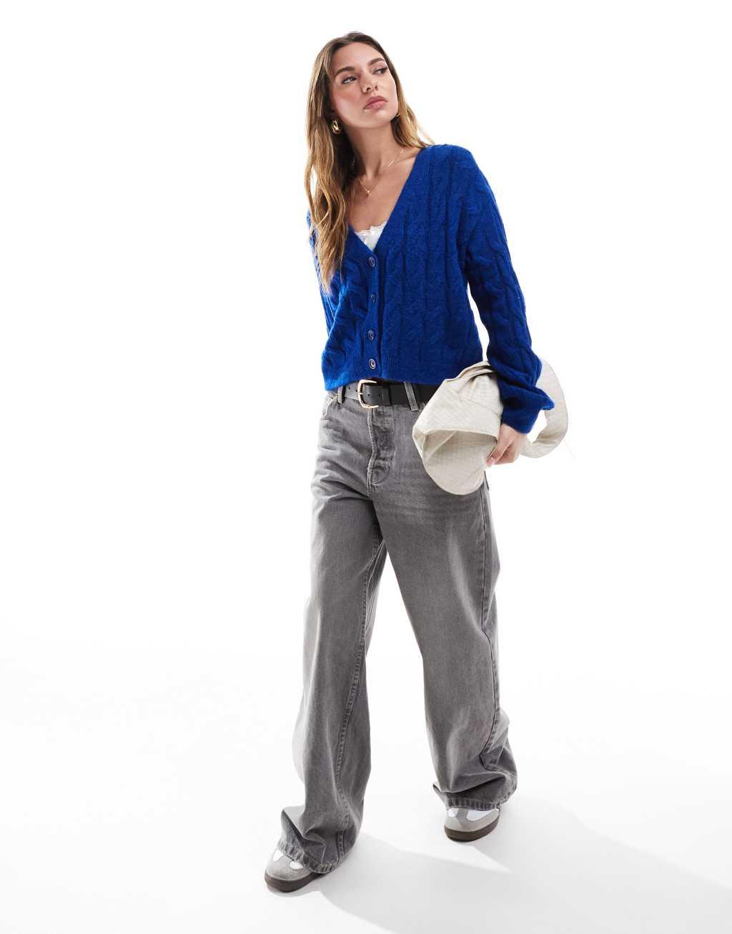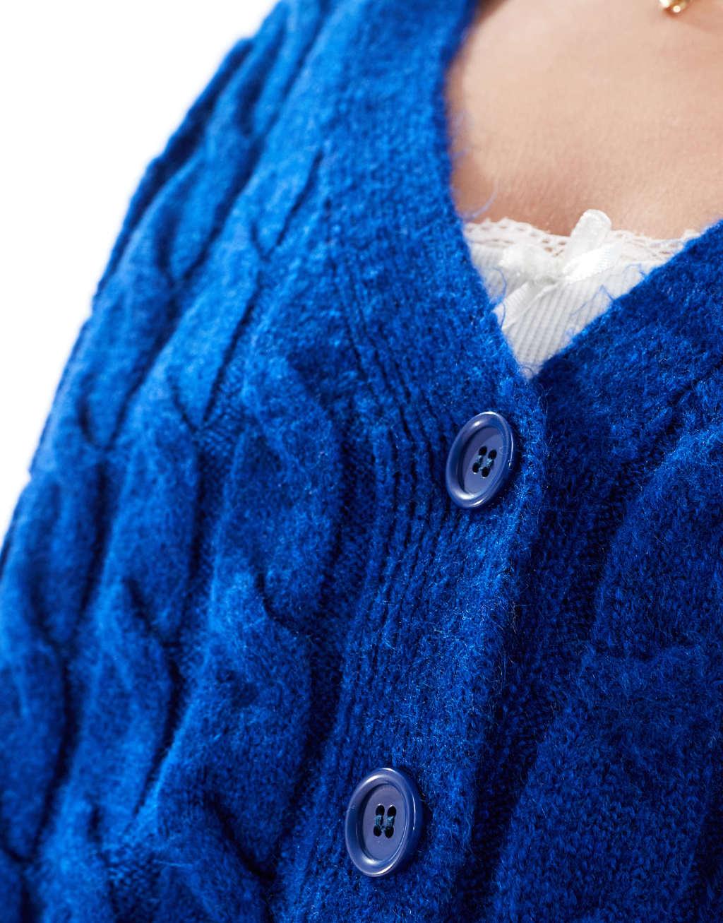 Miss Selfridge chunky cable knit cardigan in bright blue