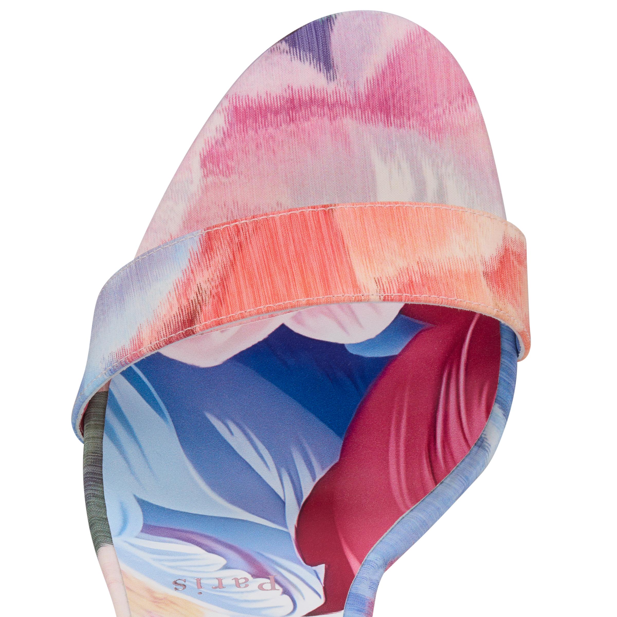 The Miss Z Sandal Queen has an elegant silhouette. Set on a 120 mm stiletto heel that reveals its iconic 20 mm platform Loubi red sole, this Maison Christian Louboutin sandal is made from Peonies printed chiné fabric, depicting subtly textured flowers. It has a padded insole, an open toe, and a slim heel strap. This model features an 'Everlasting Red' sole thanks to an innovative coating technique to ensure resistance and lasting vibrancy for our signature Louboutin red.