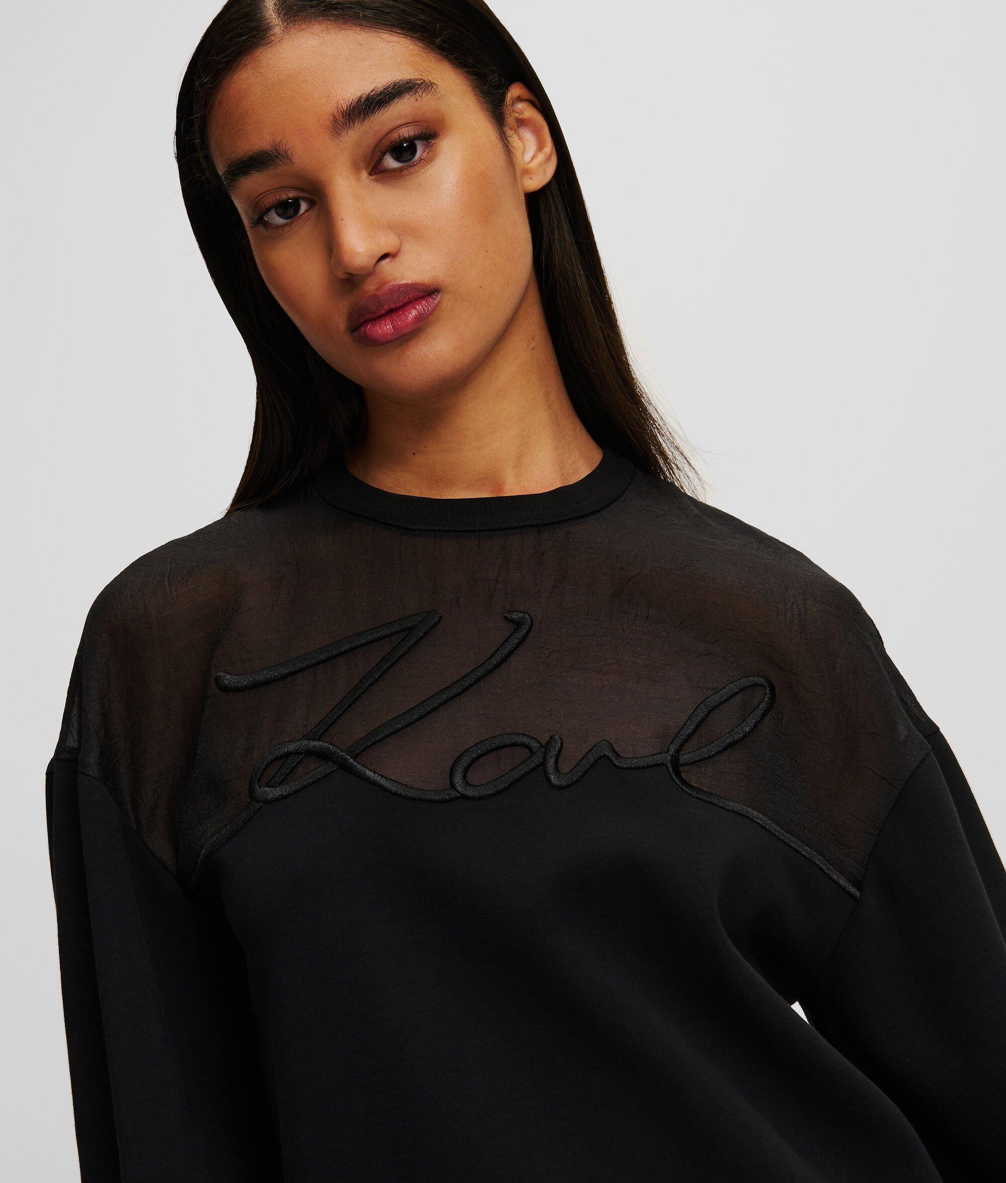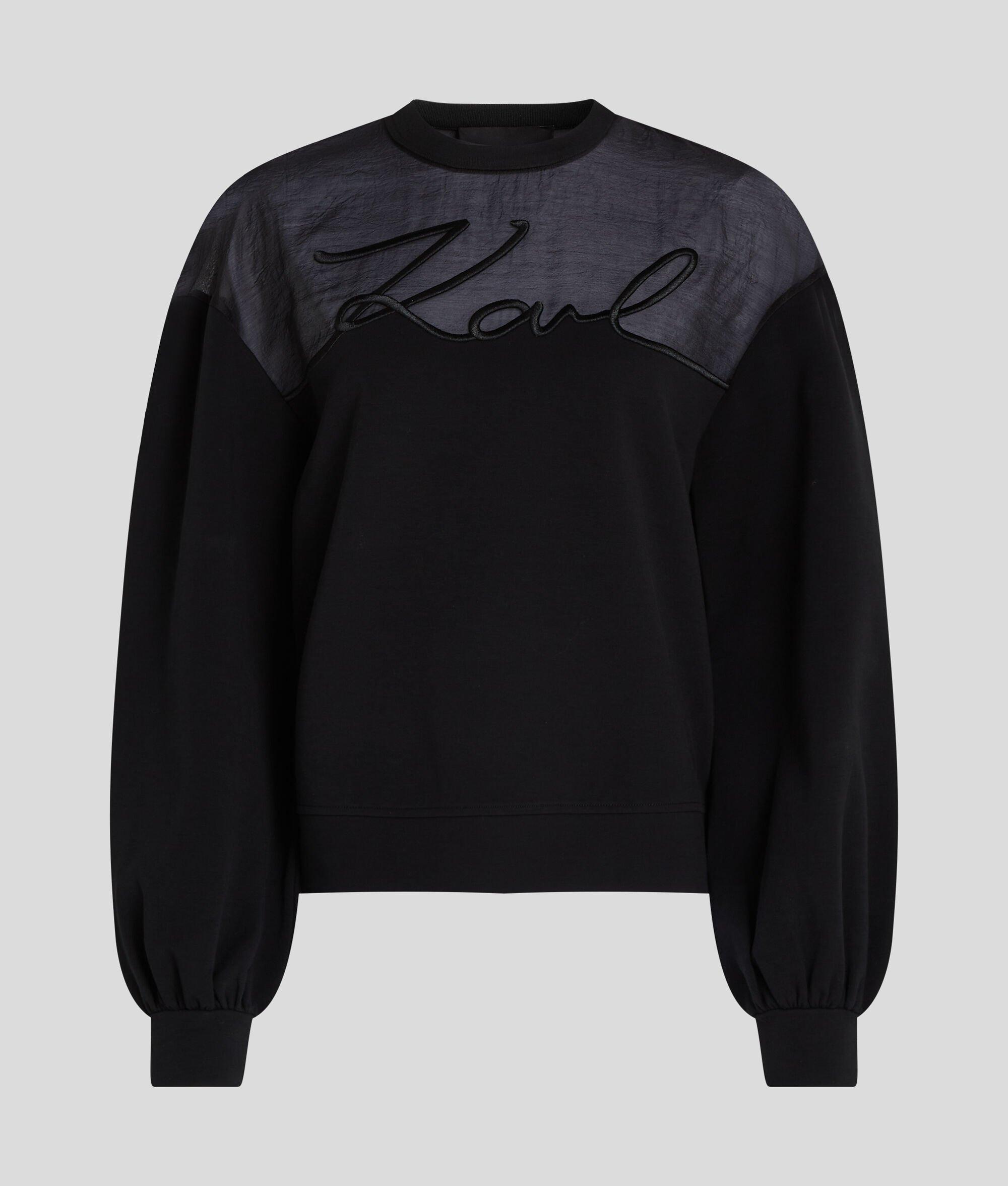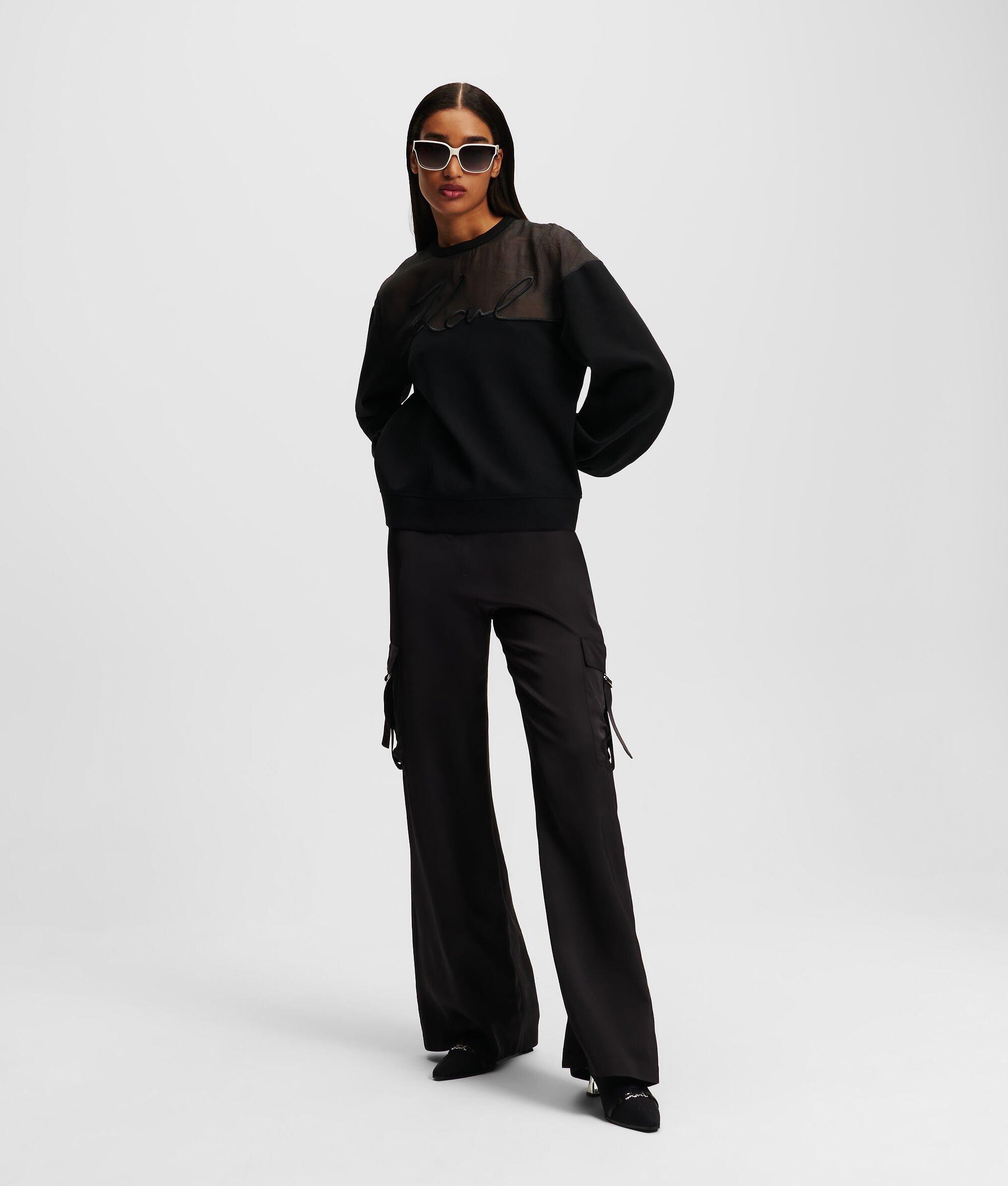 Infusing a off-duty staple with a touch of elegance, this versatile sweatshirt features a sheer organza paneling and standout KARL Signature detailing. Crafted for both style and comfort, this sweatshirt is perfect for adding a casual twist polished day or night looks.
