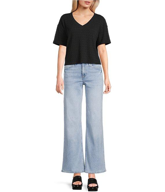 Moa Moa Striped V-Neck Short Sleeve Cropped Top