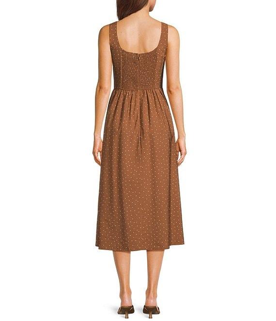 Mod Ref Polka Dot Sleeveless Basque Waist Midi Dress