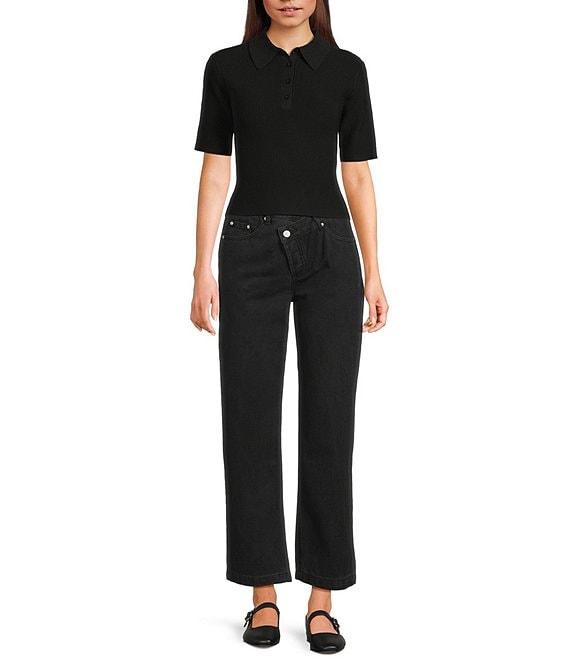 From Mod Ref, this top features: Solid Collared neckline Short sleeves 3-button placket Viscose/nylon Hand wash/hang dry Imported.