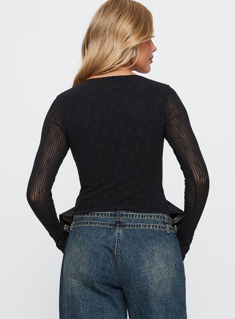 BLACK LONG SLEEVE TOP IN LACE AND JERSEY