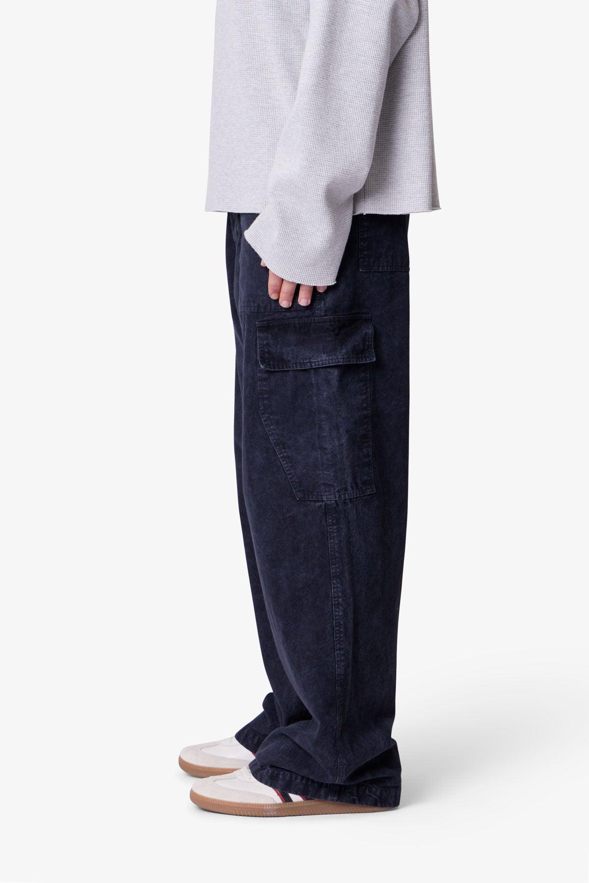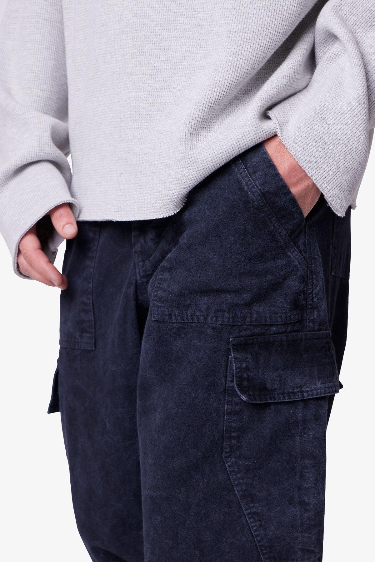 Constructed from heavyweight 100% cotton moleskin with an acid wash finish, the Moleskin Cargo Pants feature a baggy fit and a heavily brushed twill surface for a velvety texture. Designed with military-inspired paneled side pockets, oversized cargo pockets, and flapped back pockets. Finished with a standard waistband,