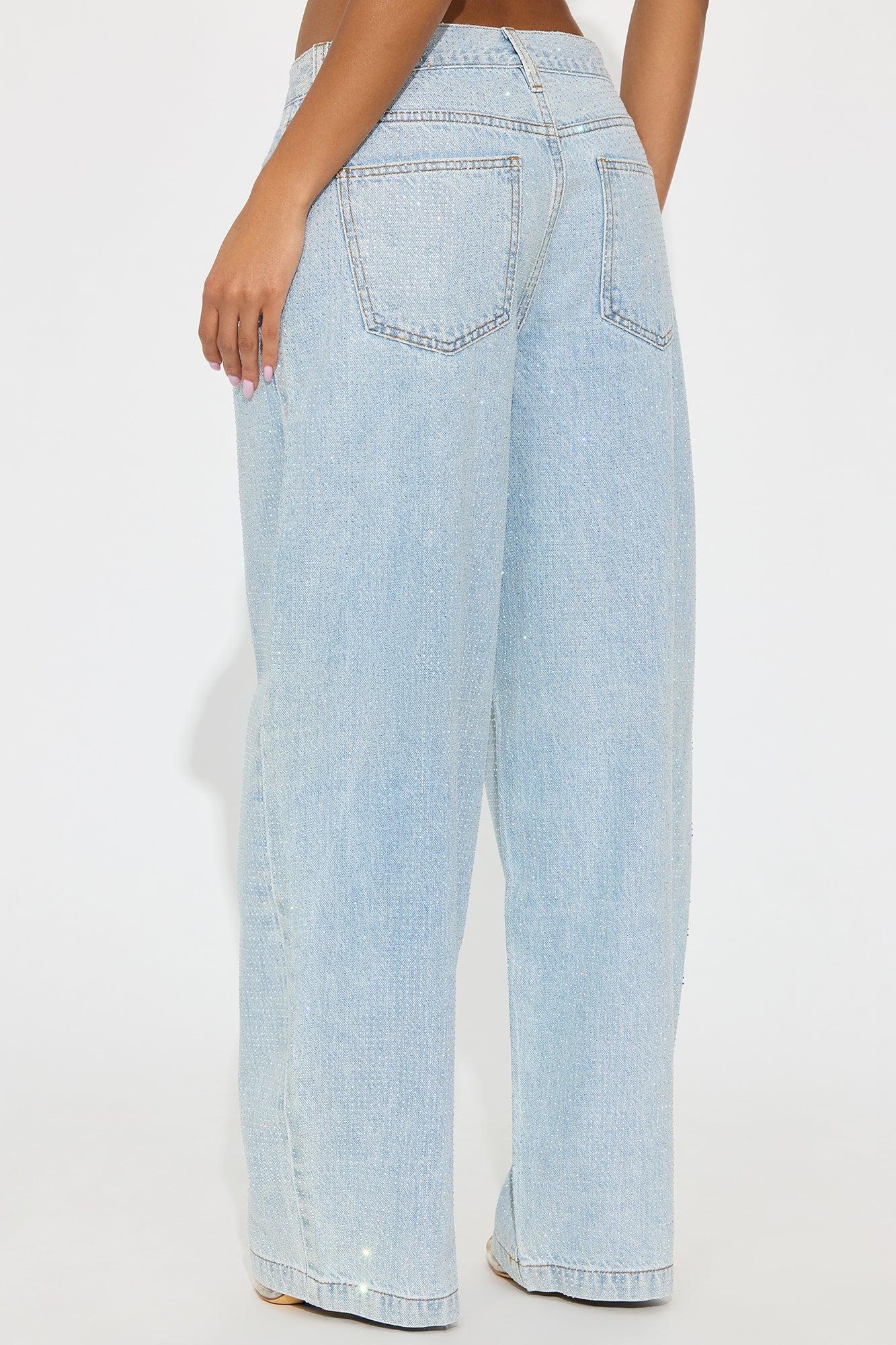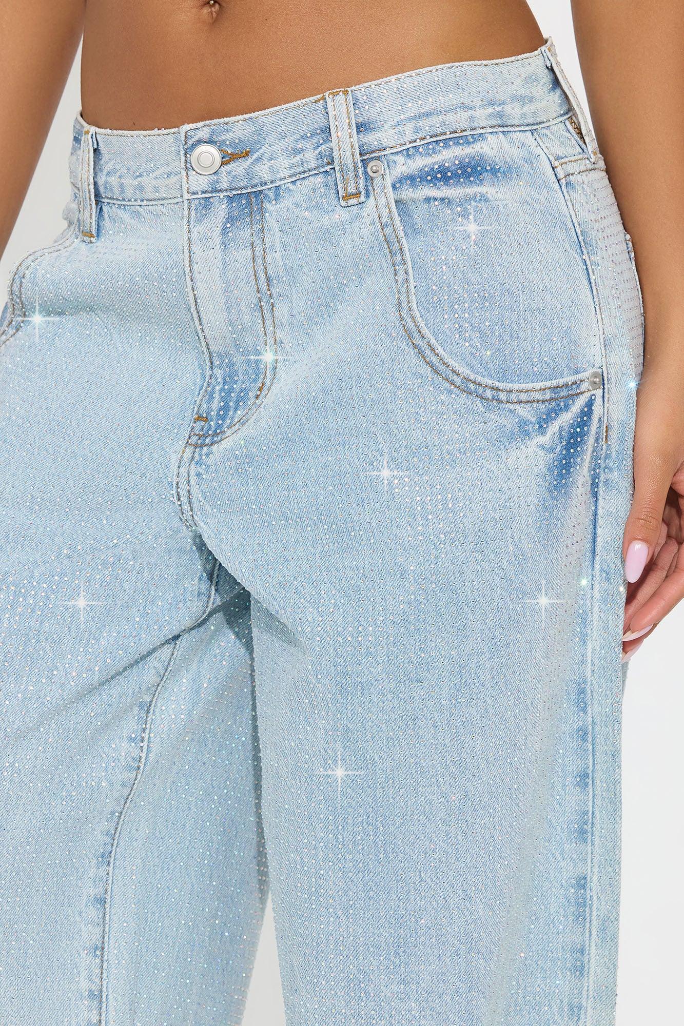 Available In Light Wash. Wide Leg Jean 5 Pocket All Over Rhinestones 11" Rise 32" Inseam Non Stretch Disclaimer: Due To The Rhinestones Process, Each Garment Is Unique Disclaimer: Due To The Specialized Wash & Distressing Process, Each Garment Is Unique 100% Cotton Imported