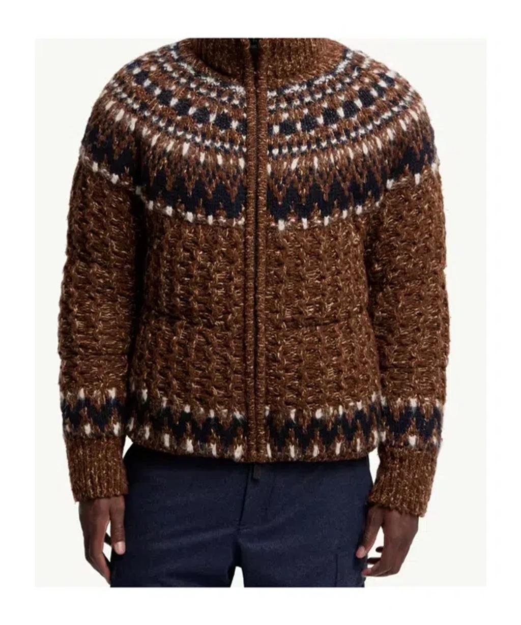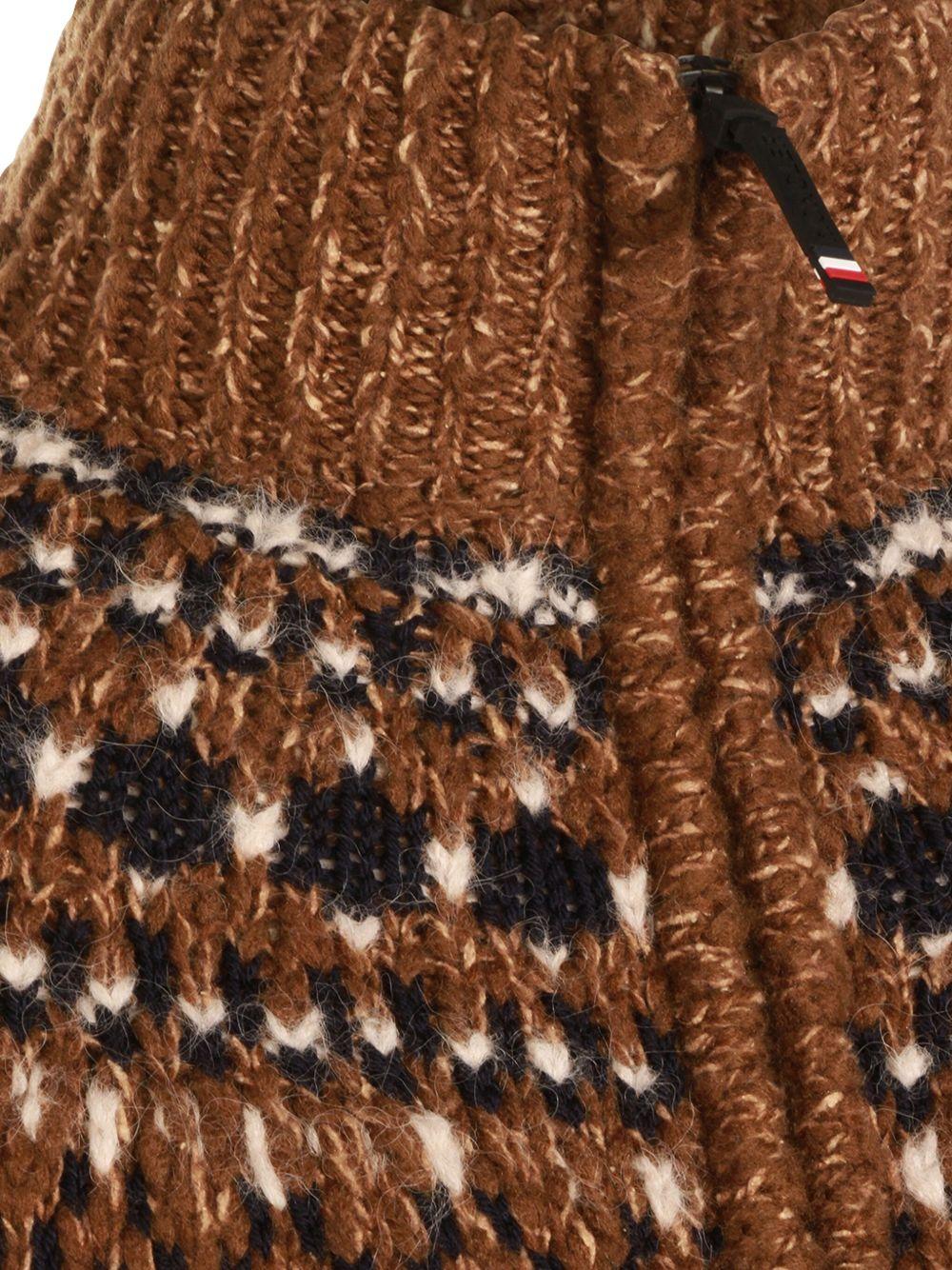 Shop Moncler Indren Wool Blend Down Jacket In Brown from 800+ stores, starting at $1651. Knit with virgin wool and padded with a down/feather fill, the Moncler Grenoble "Fairisle" sweater is skillfully woven with a chevron pattern. Stand collar Twoway zipper Embroidered logo on the left arm Ribbed cuffs Virgin wool/nylon/polyamide/silk Lining: Polyester/nylon Professional cleaning recommended Imported