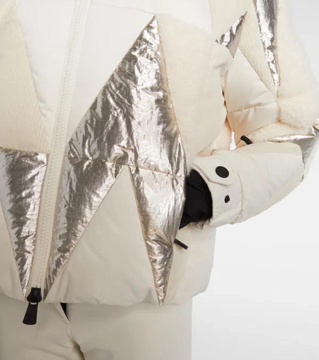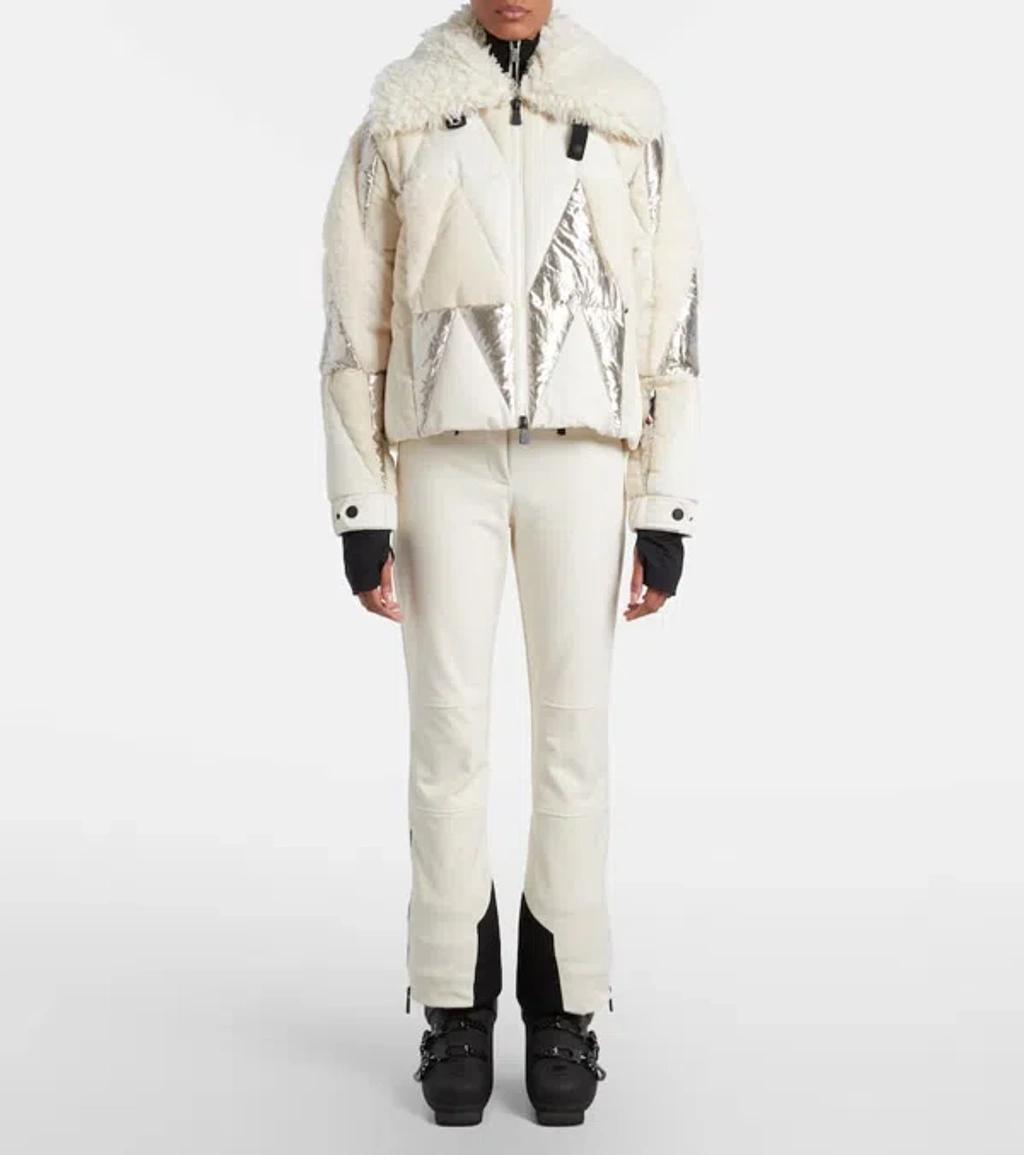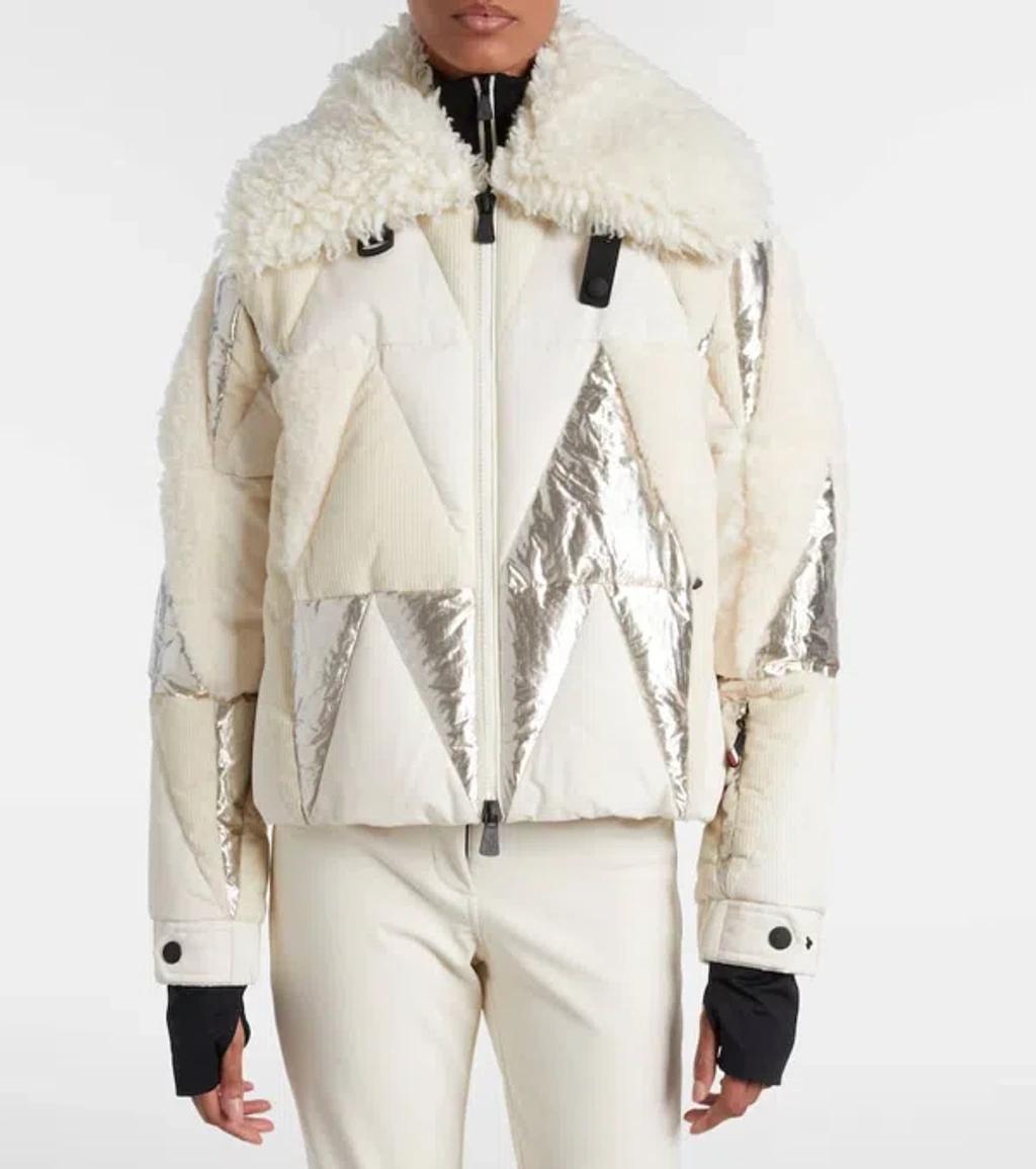 Shop Moncler Pamiers Paneled Quilted Wool-blend Fleece-and Cotton-corduroy Down Ski Jacket In Multi from 800+ stores, starting at $4416. Shedding the constraints of the shapes and fabrics seen in technical winter apparel, the Pamiers stands out for its intricate intarsia. The ski jacket is hyper textured, bringing together plush teddy and wool with both metallic and matte fabrics. Ready for the slopes, the down jacket is completed by mountain-ready details such as water-resistant zippers, wrist gaiters and a powder skirt. * Crafted for skiing and snowboarding * Crafted from teddy, polyester and metallic fabric intarsia * Polyester lining * Wool blend collar * Zipper closure * Zipped pockets * Inside media pocket with YKK AcquaGuard highly water resistant zipper closure * Ski pass pocket with zipper closure * Powder skirt * Adjustable cuffs * Hem with drawstring fastening * Technical jersey wrist gaiters composition: BASE FABRIC: 100% Polyester; LINING: 100% Polyester; COLLAR: 90% Virgin wool, 10% Polyester; PADDING: 90% Down, 10% Feather; DETAILS PADDING: 100% Polyester; 1 MATERIAL: 98% Cotton, 2% Elastane / Spandex; 2 MATERIAL: 53% METALLIZED FIBER, 47% Polyester; 3 MATERIAL: 100% Polyester; 4 MATERIAL: 83% Polyamide / Nylon, 17% Elastane / Spandex*Due to the production batches, place of production, etc., the brand will adjust the product number, appearance details, accessories and packaging, etc. may be slightly different from the picture of the goods, specific to prevail in kind.