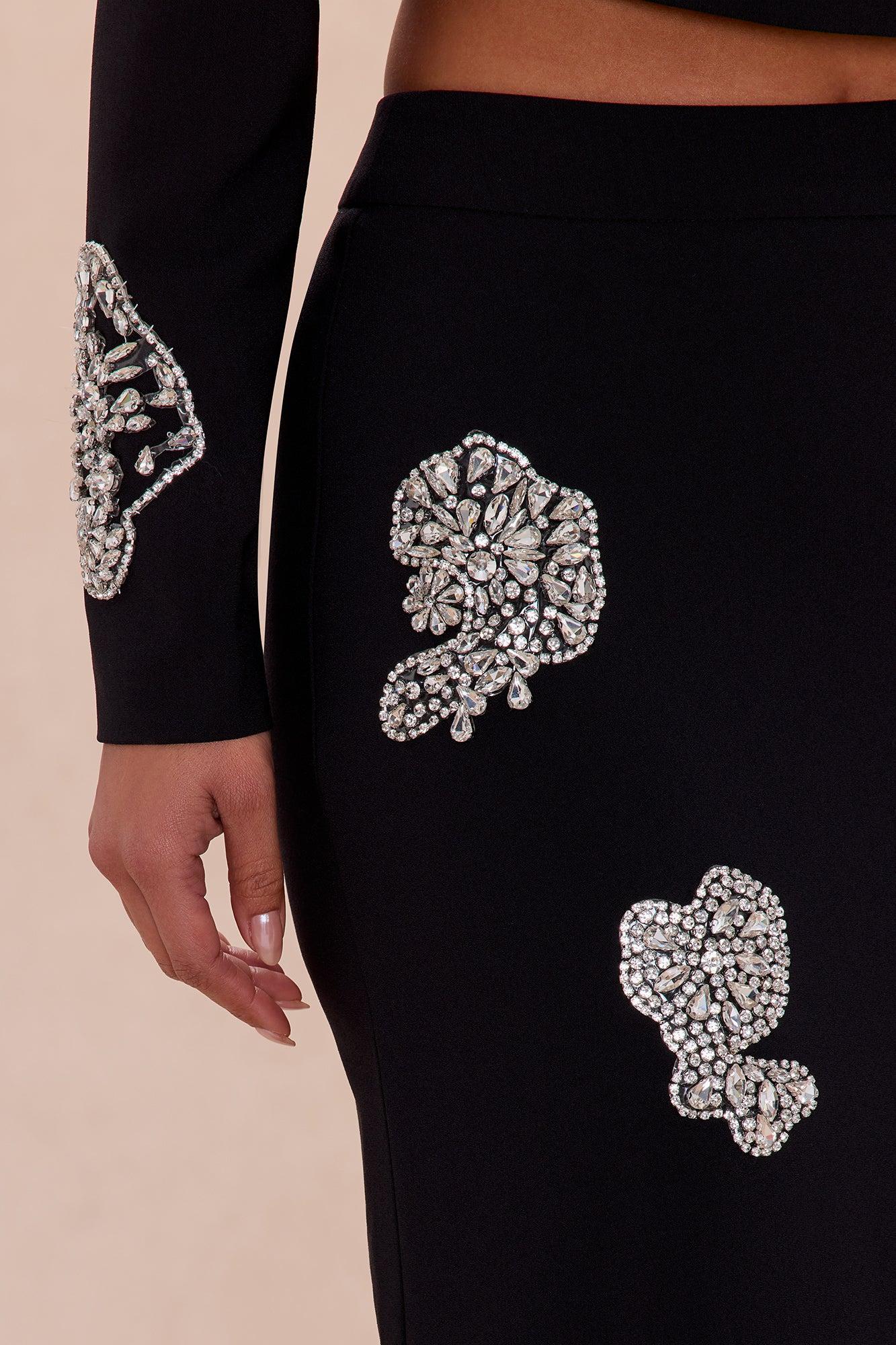 Monique Rhinestone Embellished Maxi Skirt - Black Female