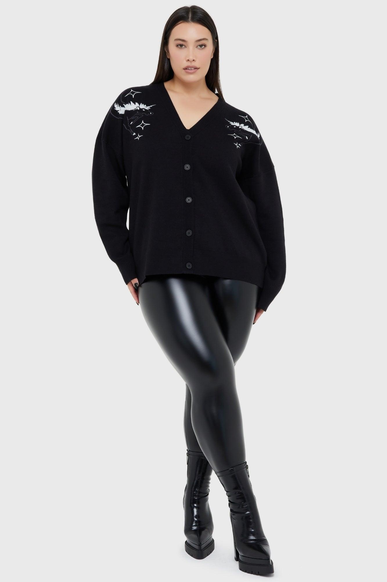 MONOCHROMI CORN- Official ADVENTURE TIME licensed product.- Soft touch, heavyweight true knitted cardigan- Unique 'Adventure Time' artwork knitted into the cardigan throughout with pearlescent yarn details. - Long sleeved with ribbed cuff.- Front 5 button closure.- Designed in Brighton, England.Model is 5'9 and wears a size XS.With KILLSTAR branding, 48% Viscose 30% Polyester 22% Polyamide.Machine wash cold (30°c) / Do not bleach / Do not tumble dry / Iron at low temperature / Do not dry clean. Imported.