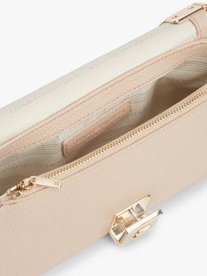 Tommy Hilfiger women's bag. This pebbled crossbody is distinguished by our monogram hardware clasp for an elevated, heritage-inspired look. Compact in size with room for essentials, it’s finished with a polished chain strap for versatile day-to-evening wear.