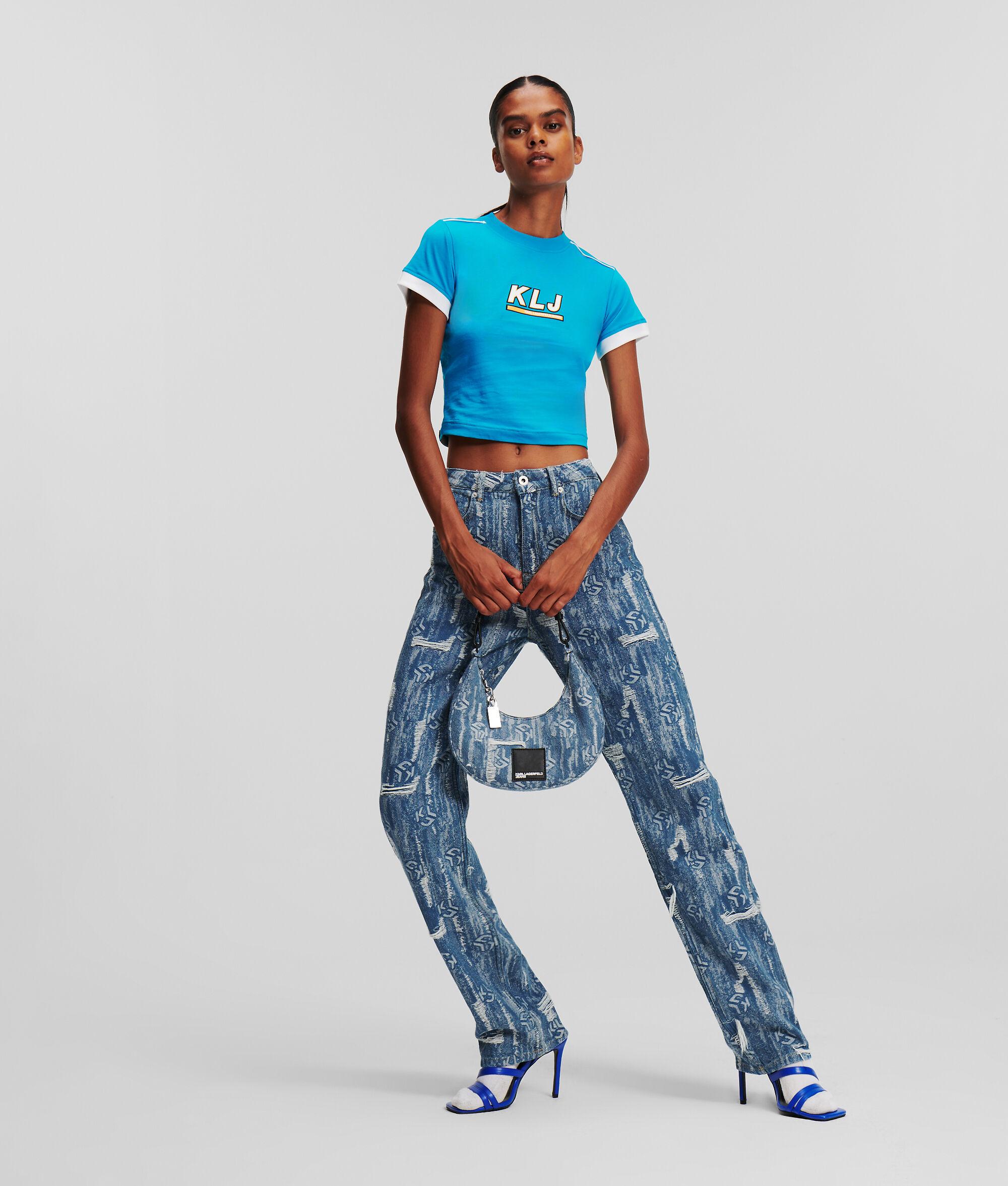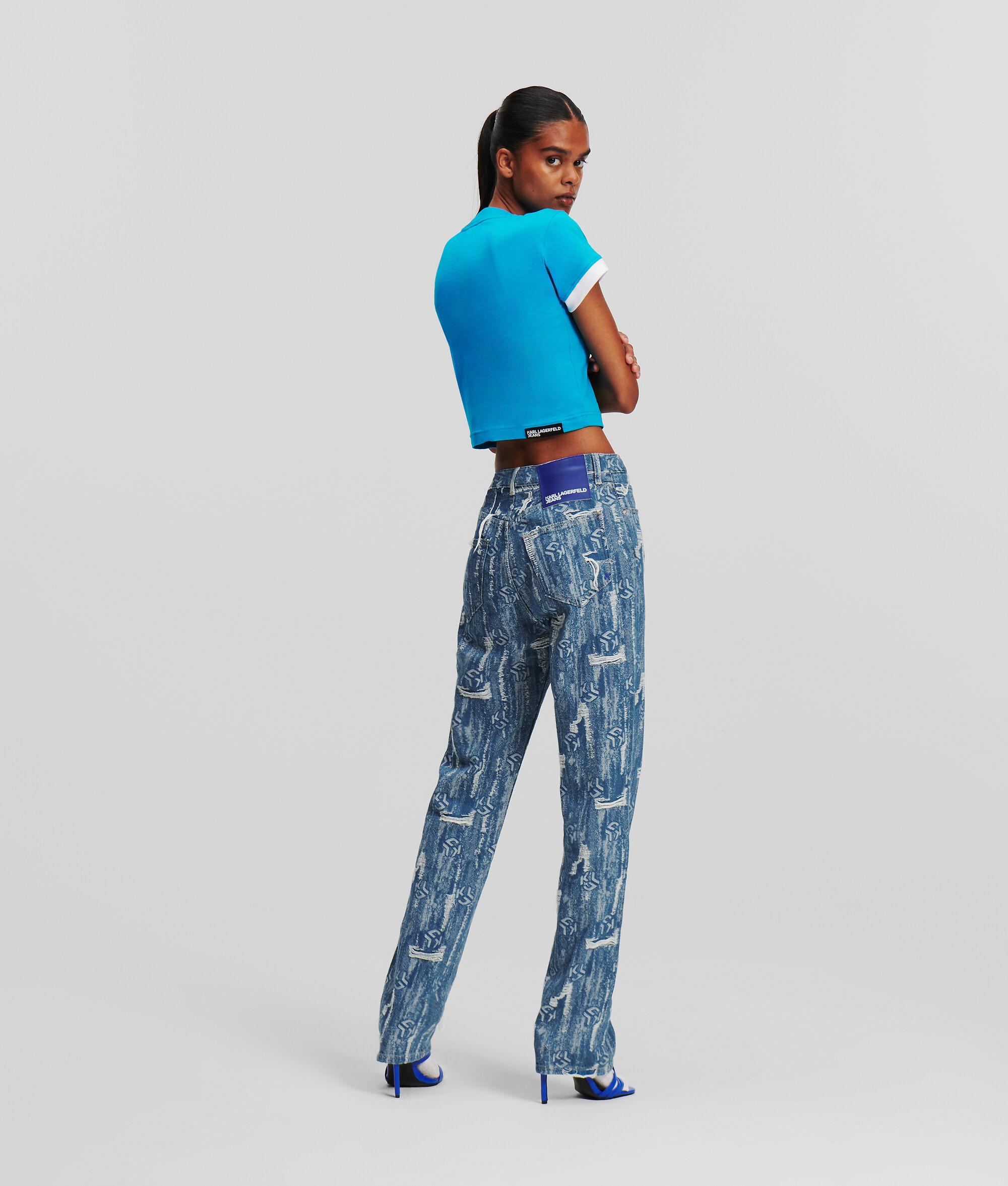 Team these straight-leg jeans, featuring an all-over KLJ monogram design and distressed detailing, with the matching jacket for a bold head-to-toe denim look.