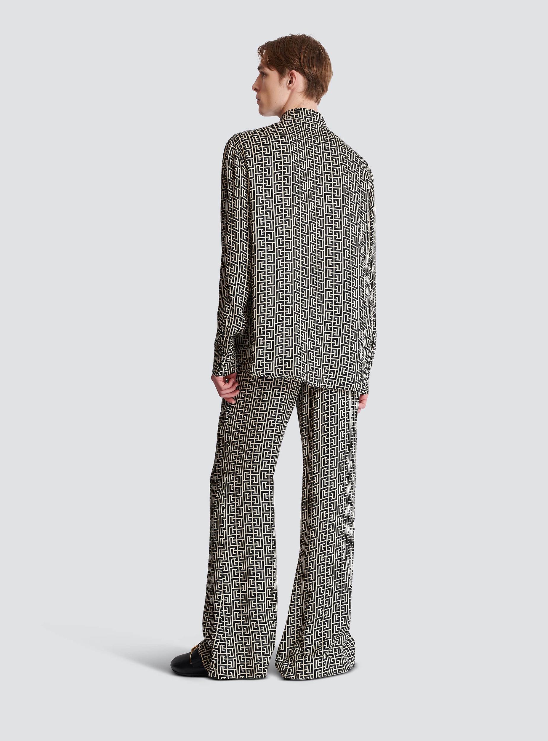 Flowing shirt with PB Labyrinthe monogramShirt collarLong sleevesStraight cuffs with 2 engraved buttonsFastening with 7 engraved buttons (6 under the placket)Rounded hemRelaxed fitModel measures 190cm and wears a size 48Main material: 100% cuproMade in ItalyItem: FH1HS485VI36
