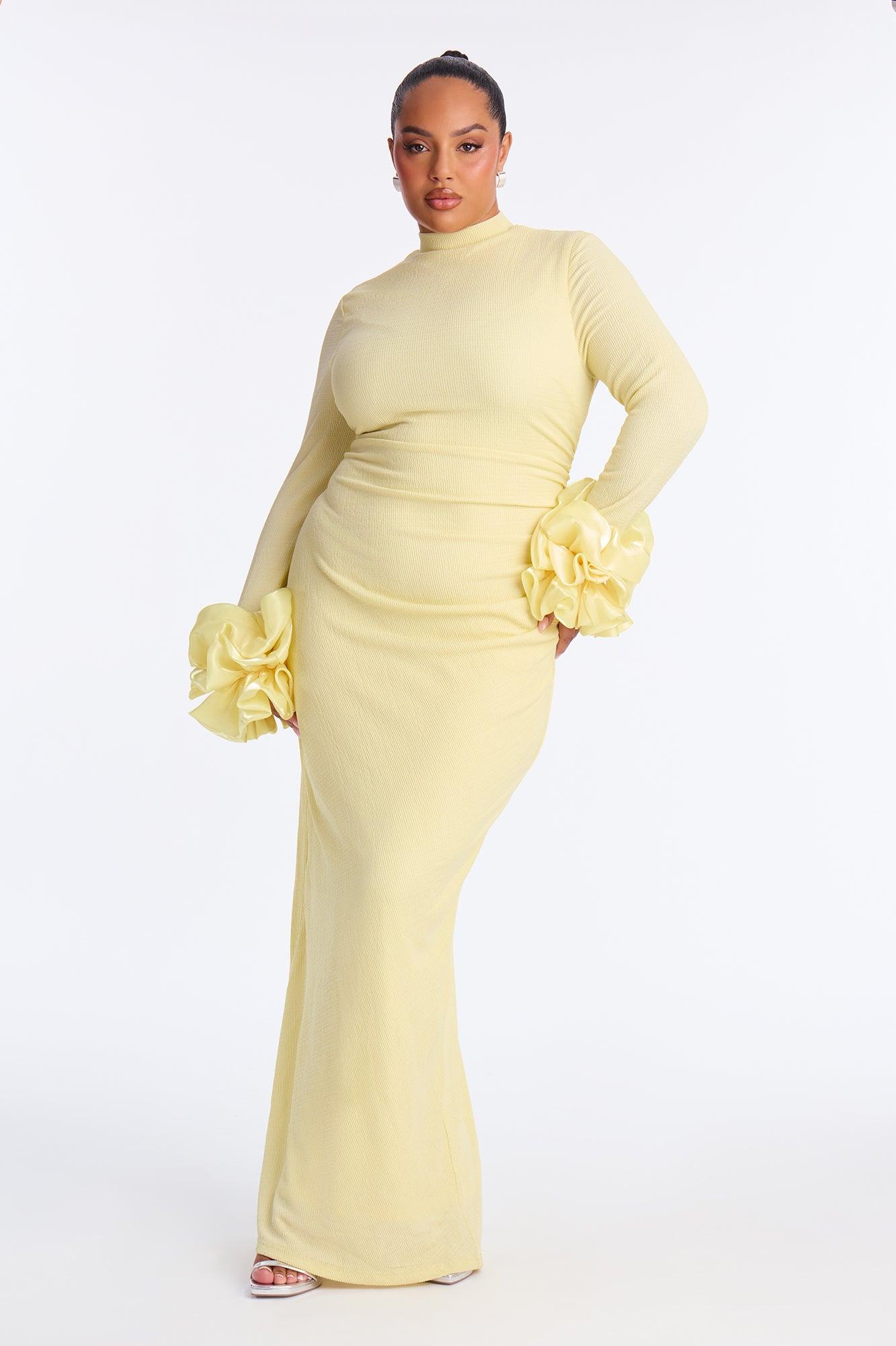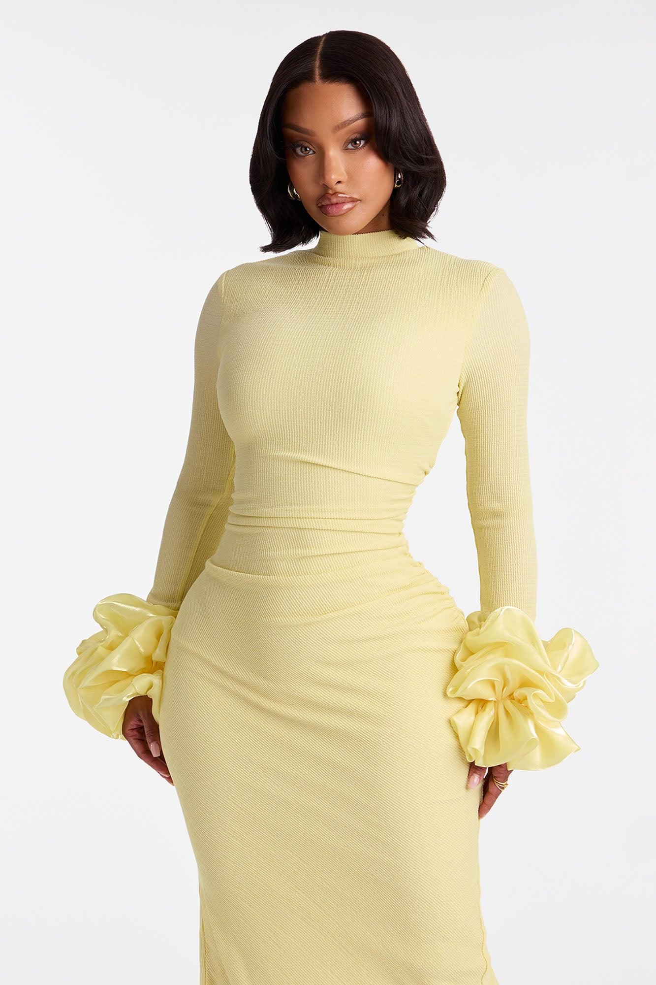 Monroe Ruffle Sleeve Textured Maxi Dress - Butter Yellow Female
