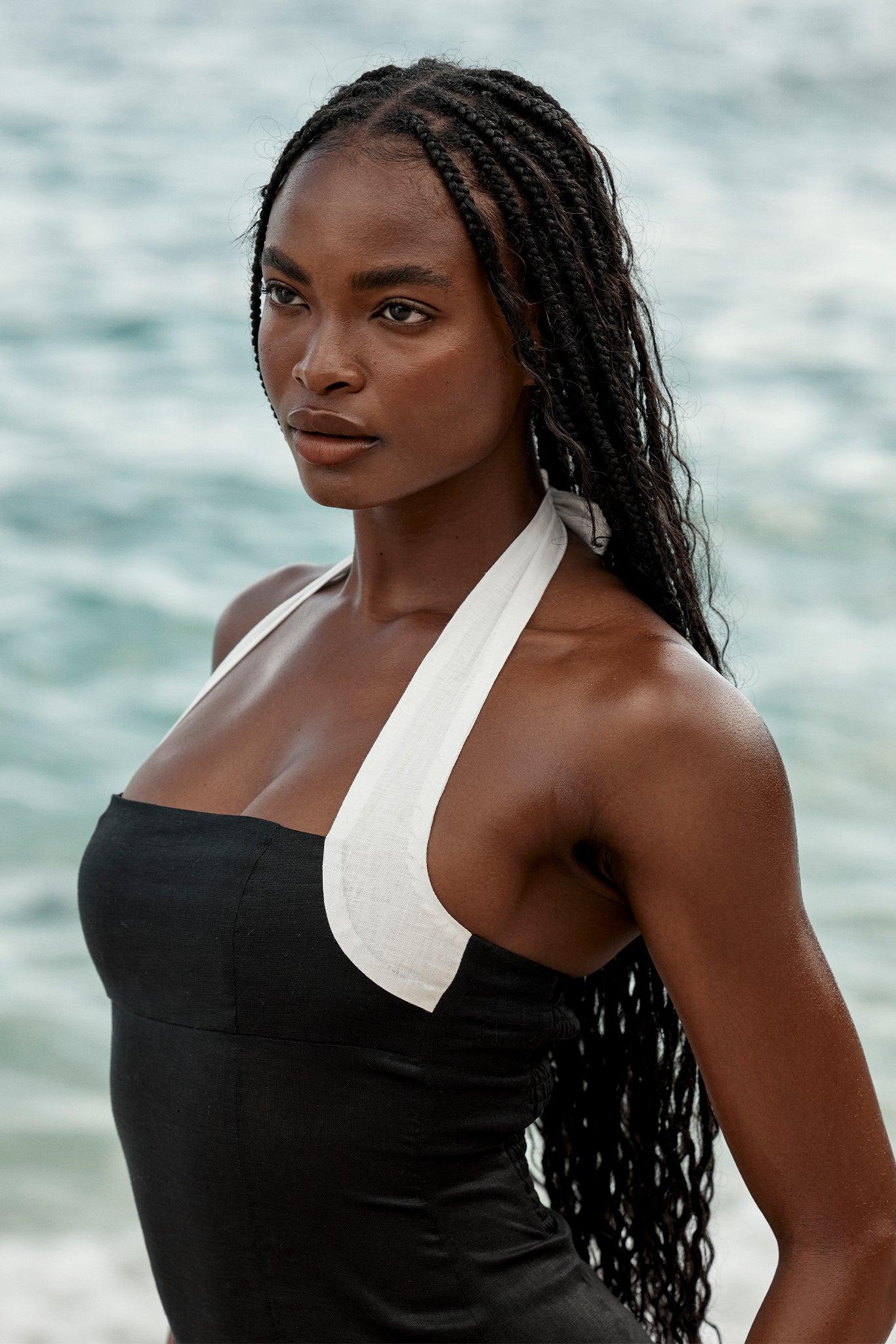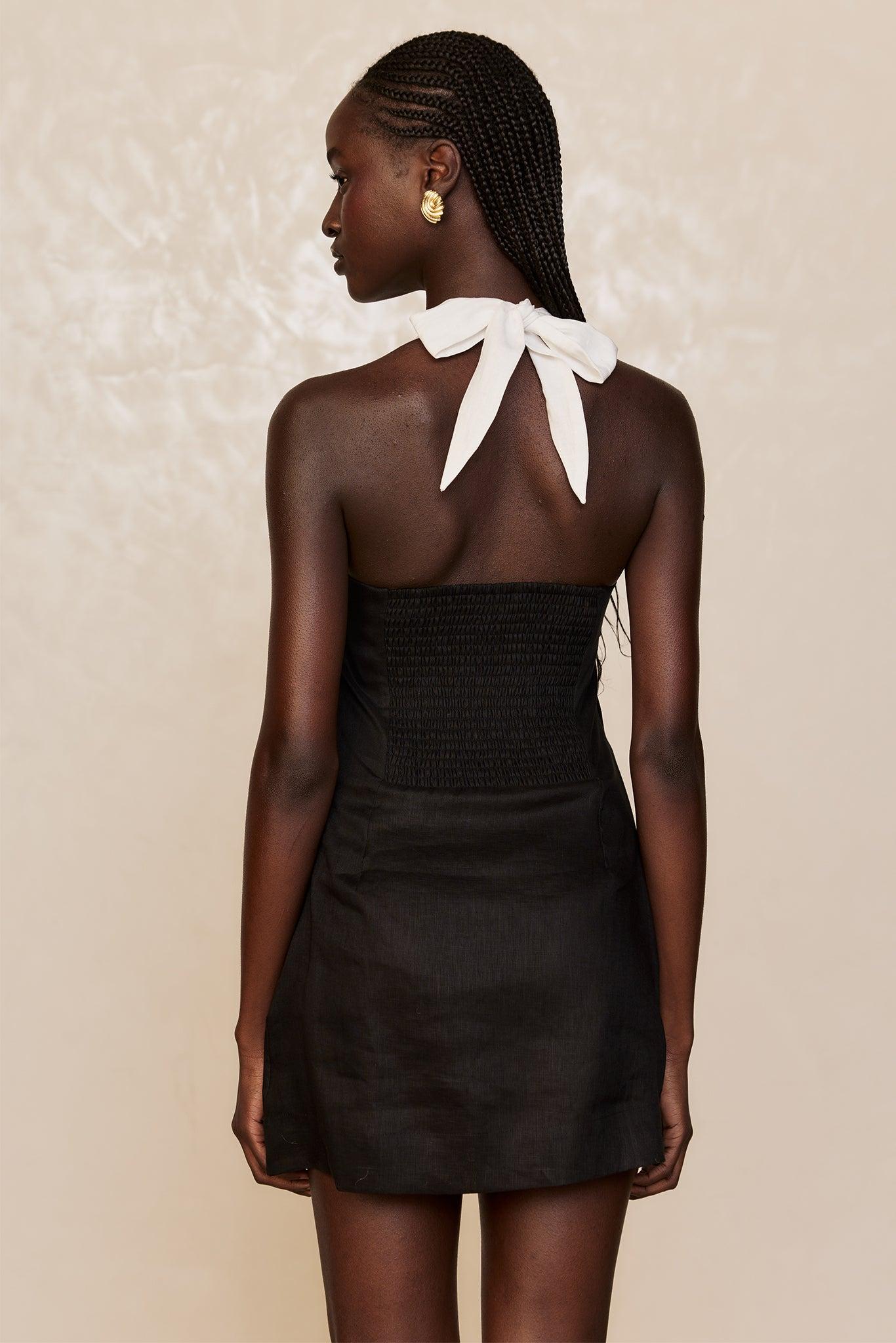 Books vacation immediately. Classic & chic, this linen mini dress is made for warm-weather escapes. It features a chic square neckline and a halter design with adjustable ties for a personalized fit. The smocked back adds comfort and ease, while the invisible side zip keeps the look sleek. Lightweight and effortlessly stylish, the Montserrat Mini Dress is your perfect vacation-ready piece.Features:Square necklineHalter dress with adjustable tiesSmocked backInvisible side zip closureMini lengthLined in bustUnlined body, semi sheerCare:Hand wash cold. Do not bleach or soak. Do not tumble dry. Cool iron on reverse. Dry clean.