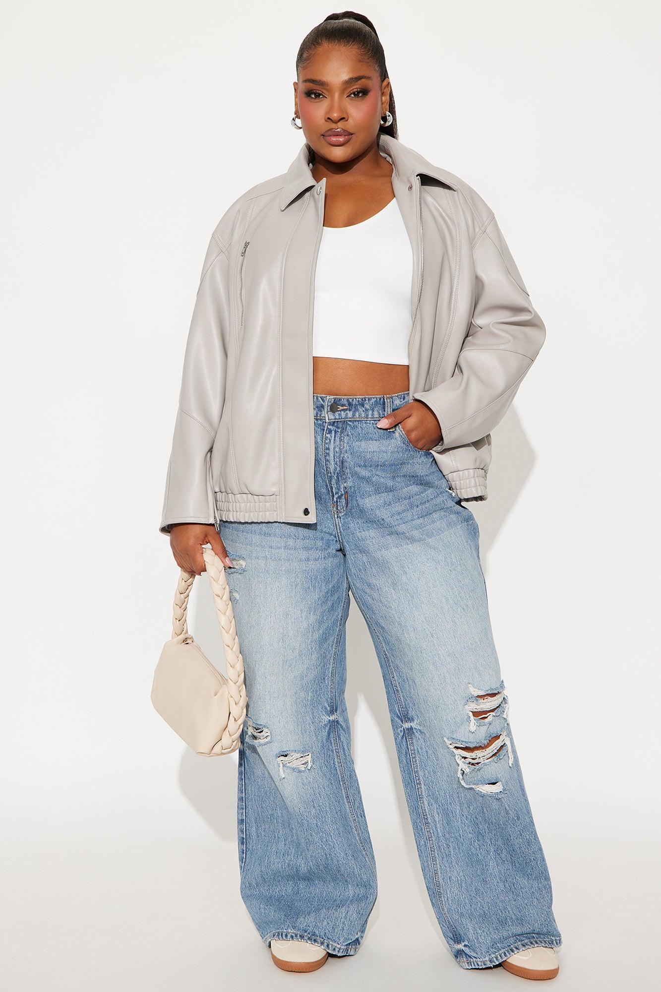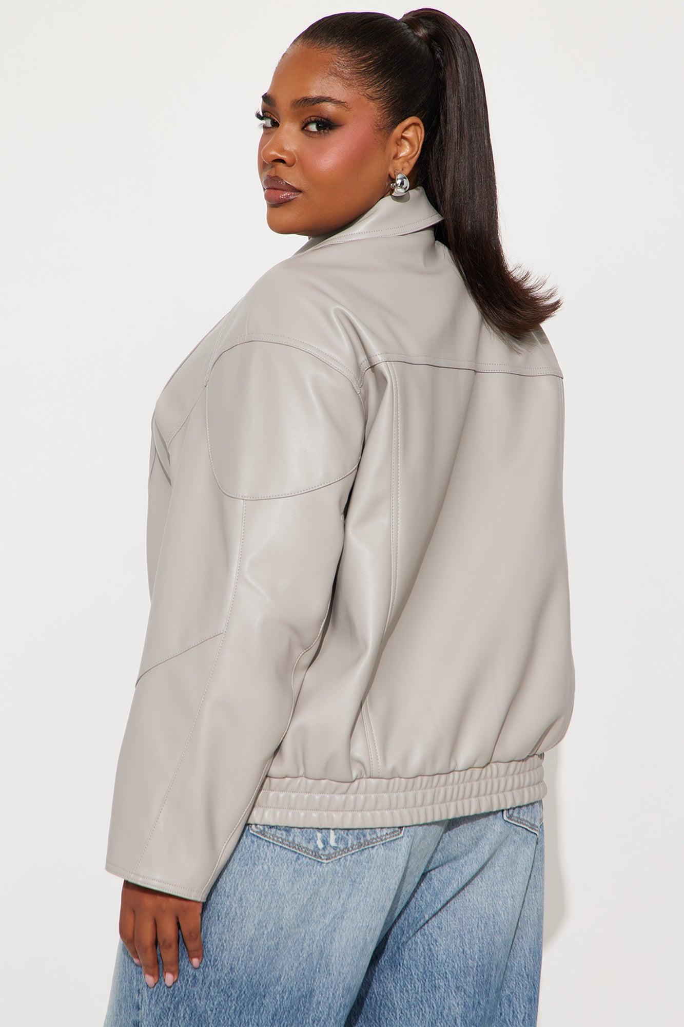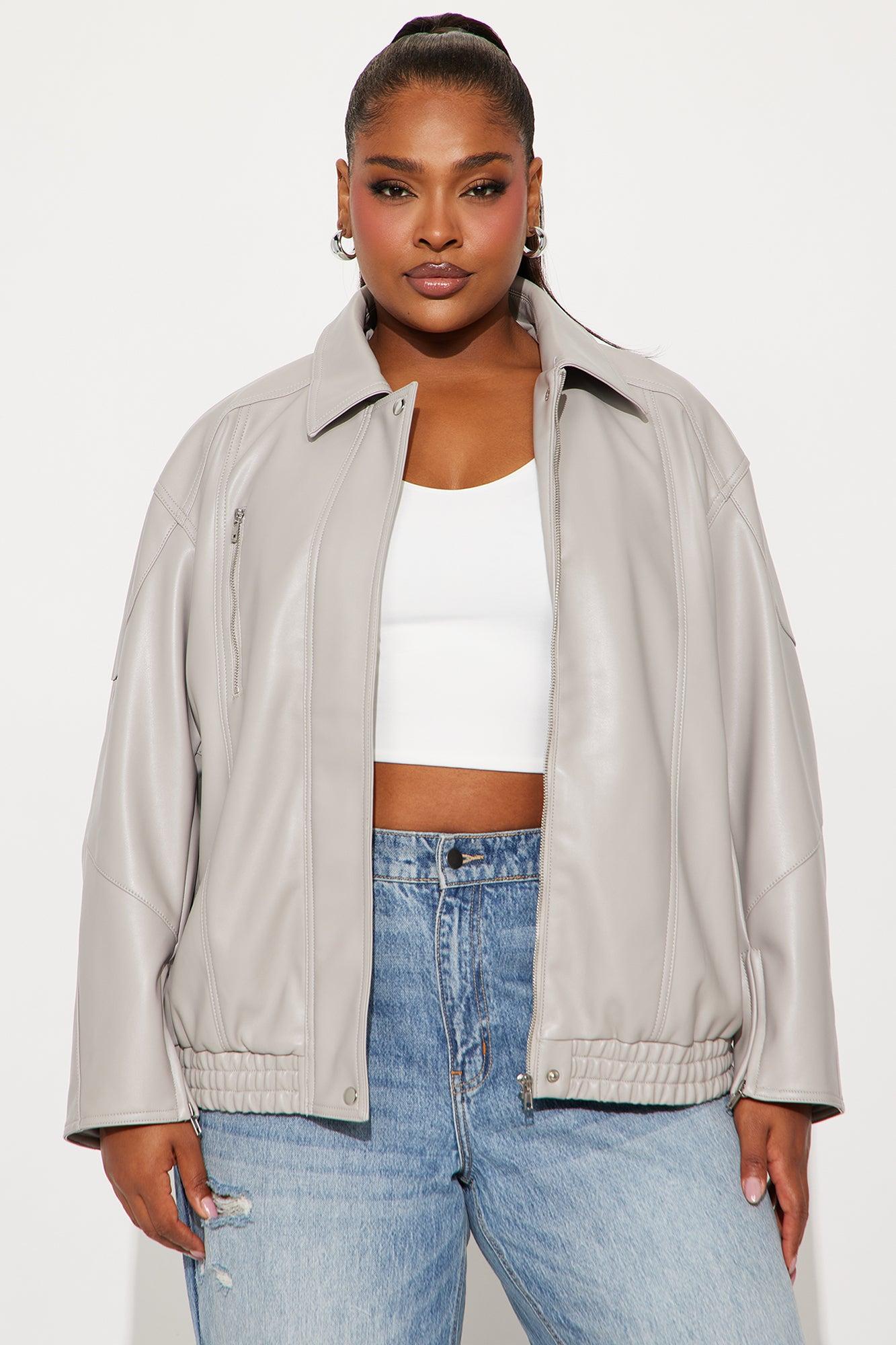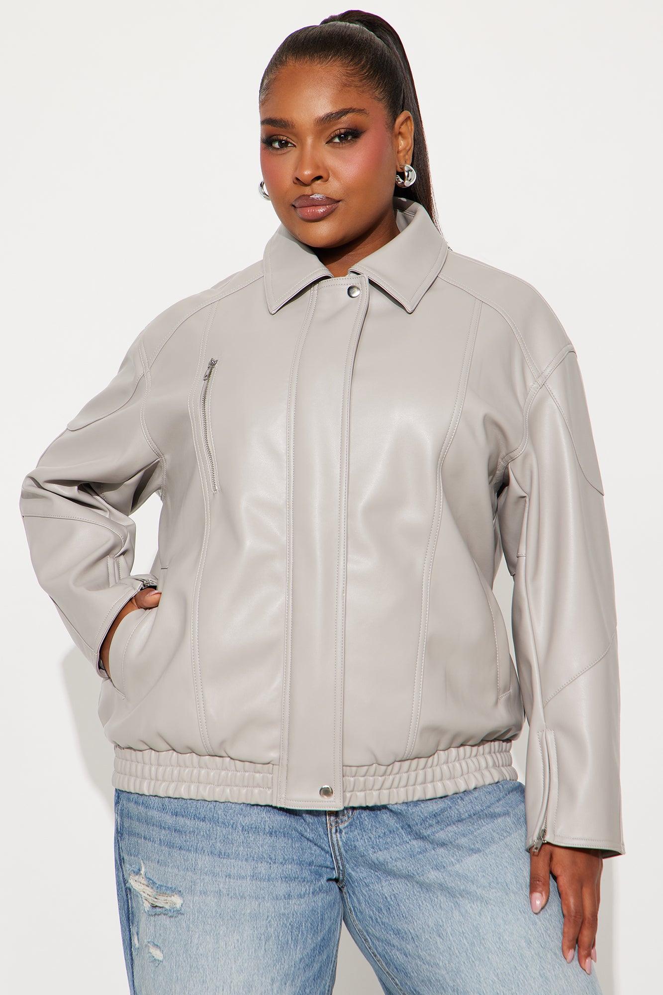 Available In Black, Burgundy, Hunter And Light Grey. Faux Leather Bomber Jacket Collar Neckline Long Sleeves W/ Zipper Detail Button & Zipper Closure Elastic Hem Fully Lined Self Backing: 100% Polyester Coating: 100% Polyurethane Lining: 100% Polyester Imported California Proposition 65WARNING: Cancer and Reproductive Harm - www.P65Warnings.ca.gov.