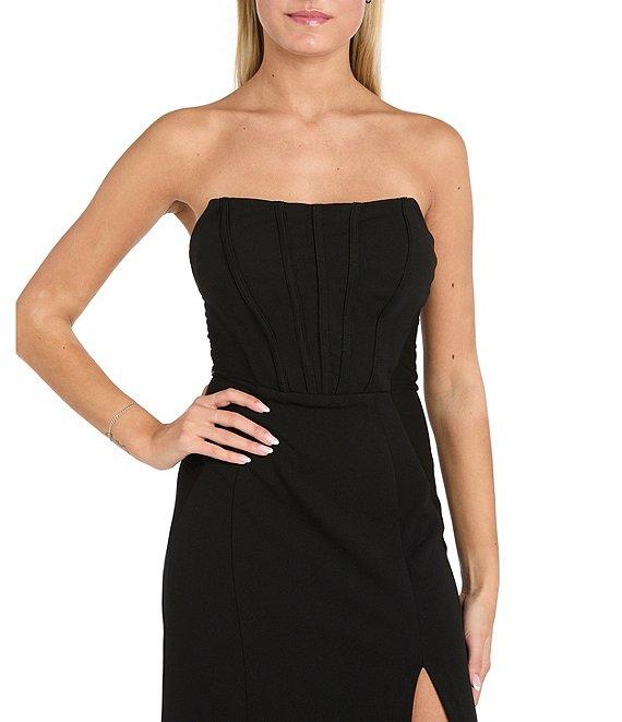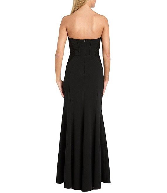 Morgan & Co. Strapless Bustier-Bodice Stretch Scuba Crepe Long Dress