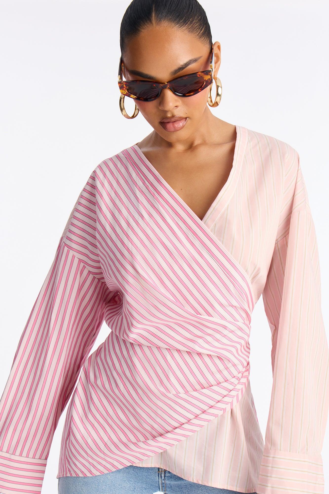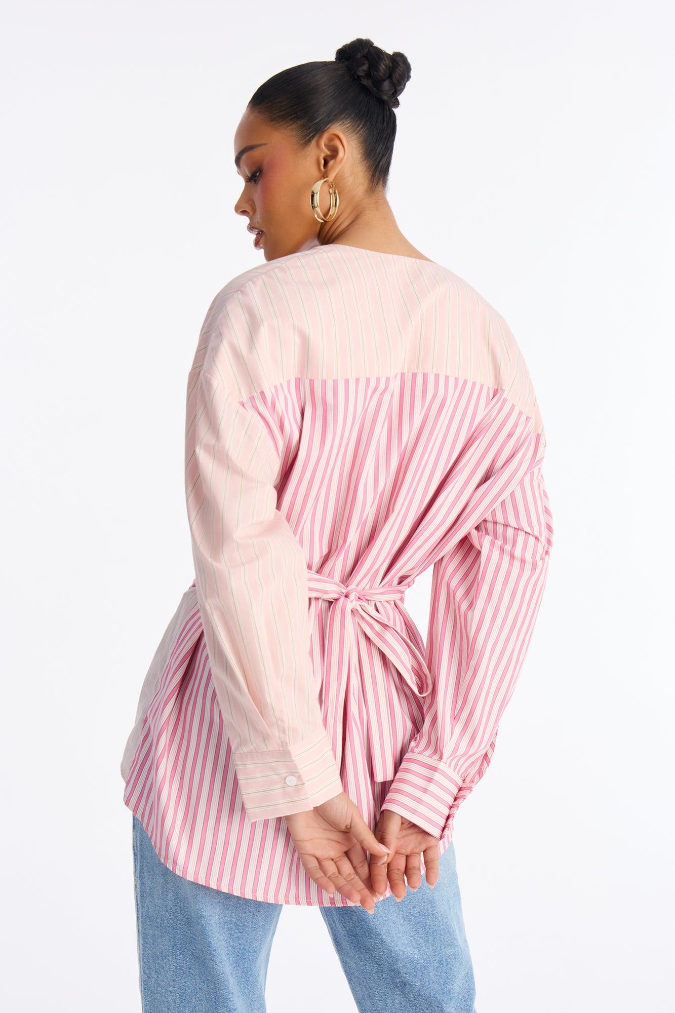 Morning After Striped Tie Long Sleeve Shirt - Pink/combo Female