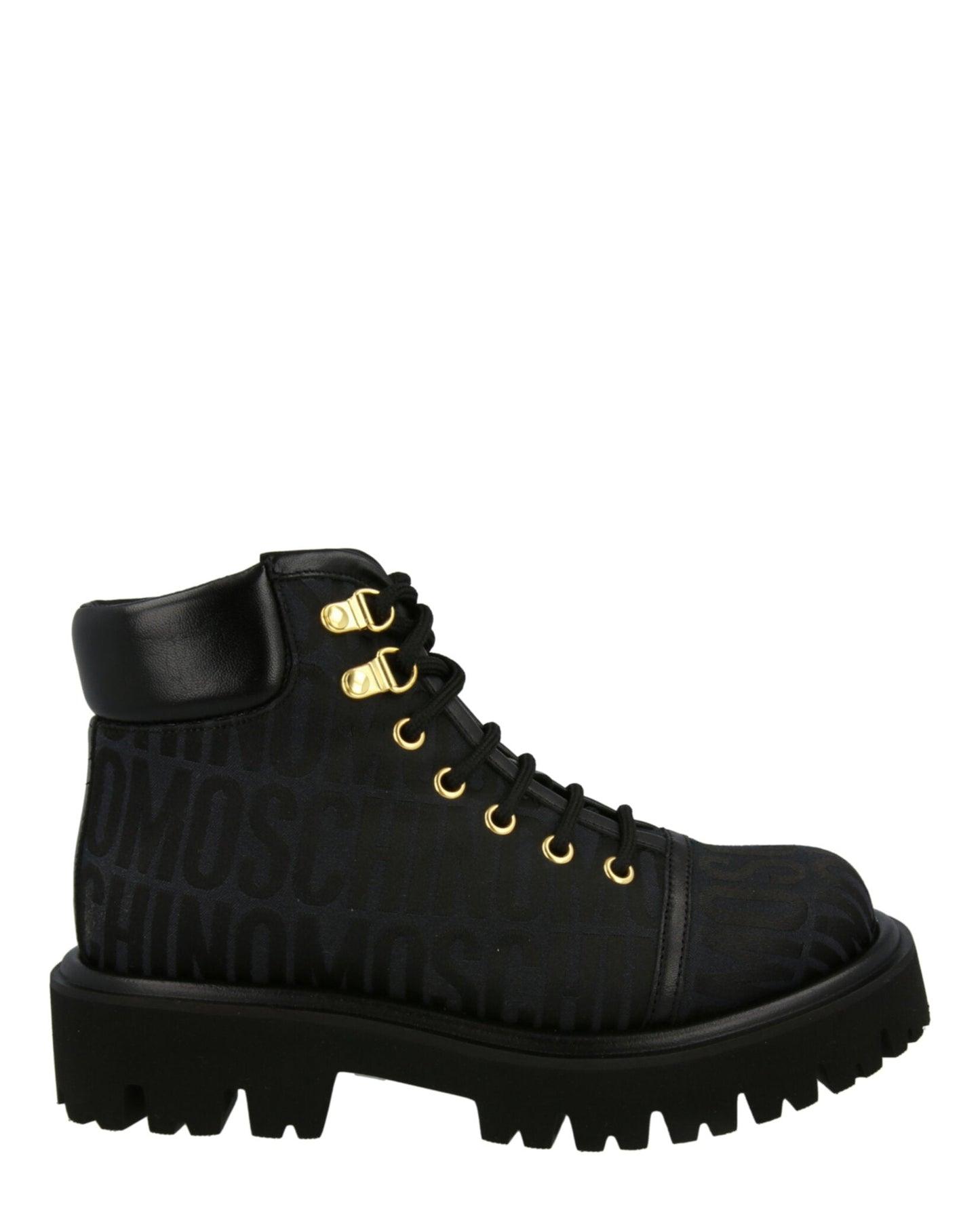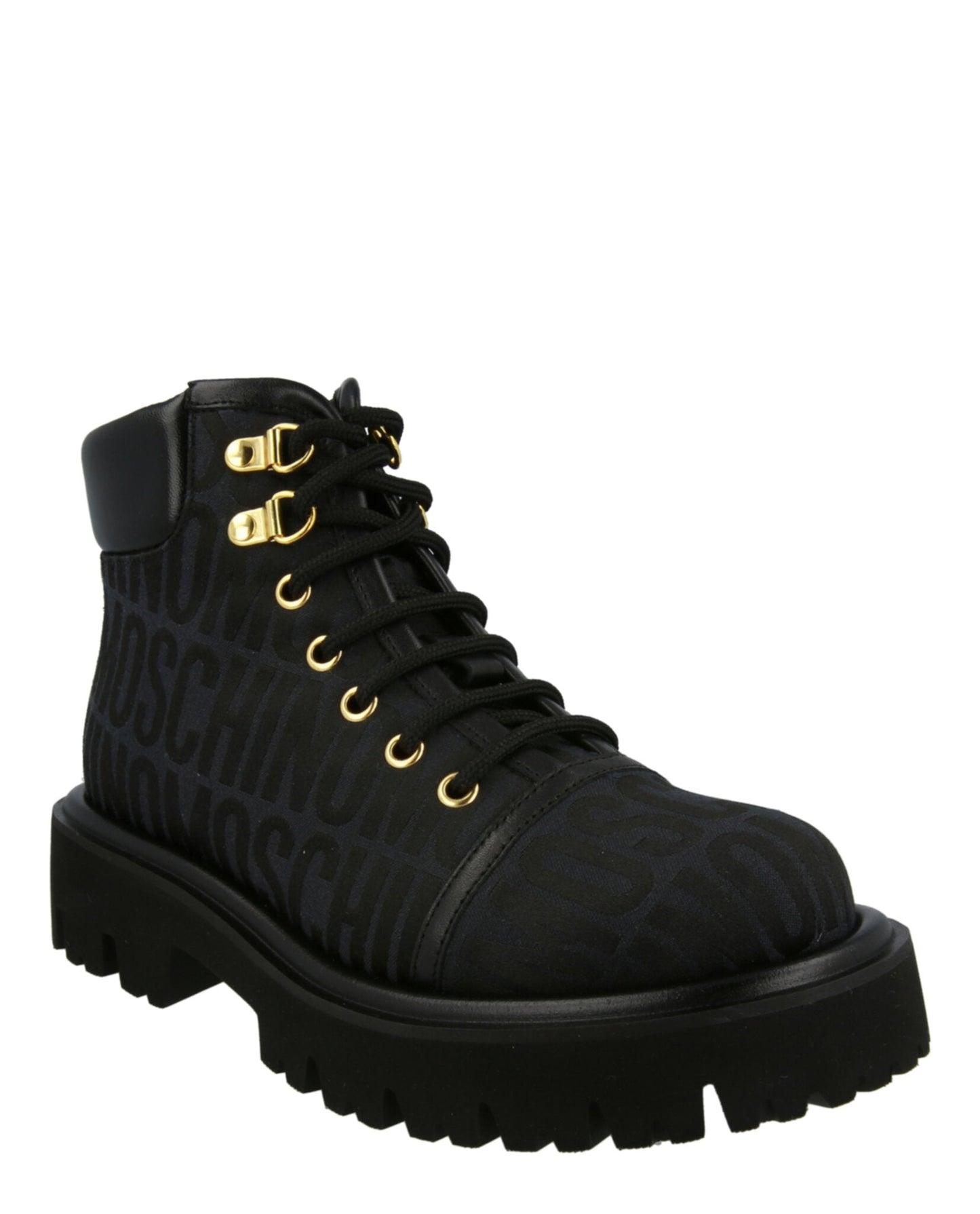 All over logo jacquard design with leather trim accents; Gold-tone eyelets