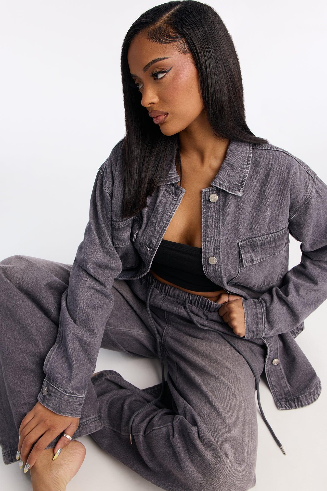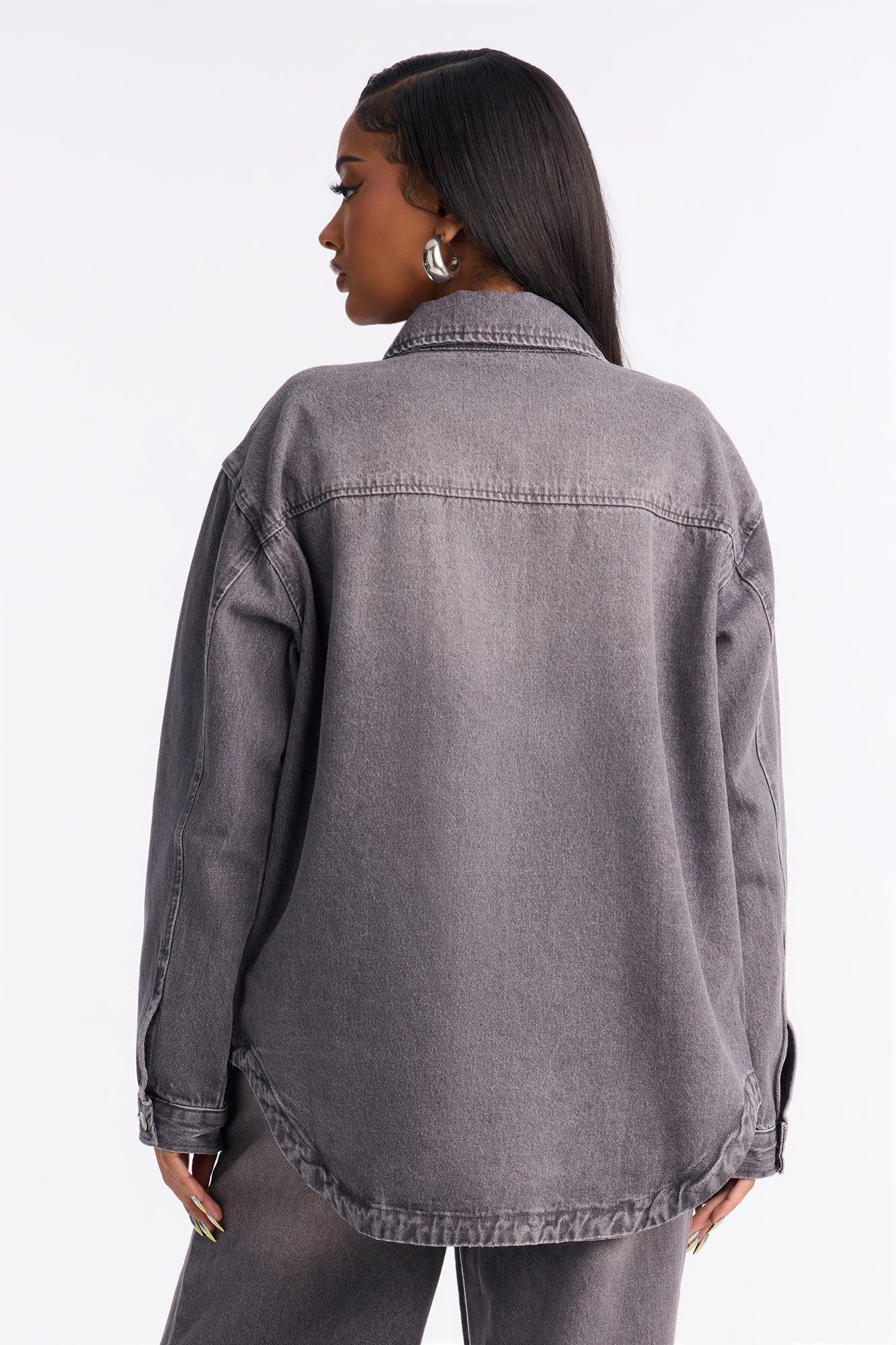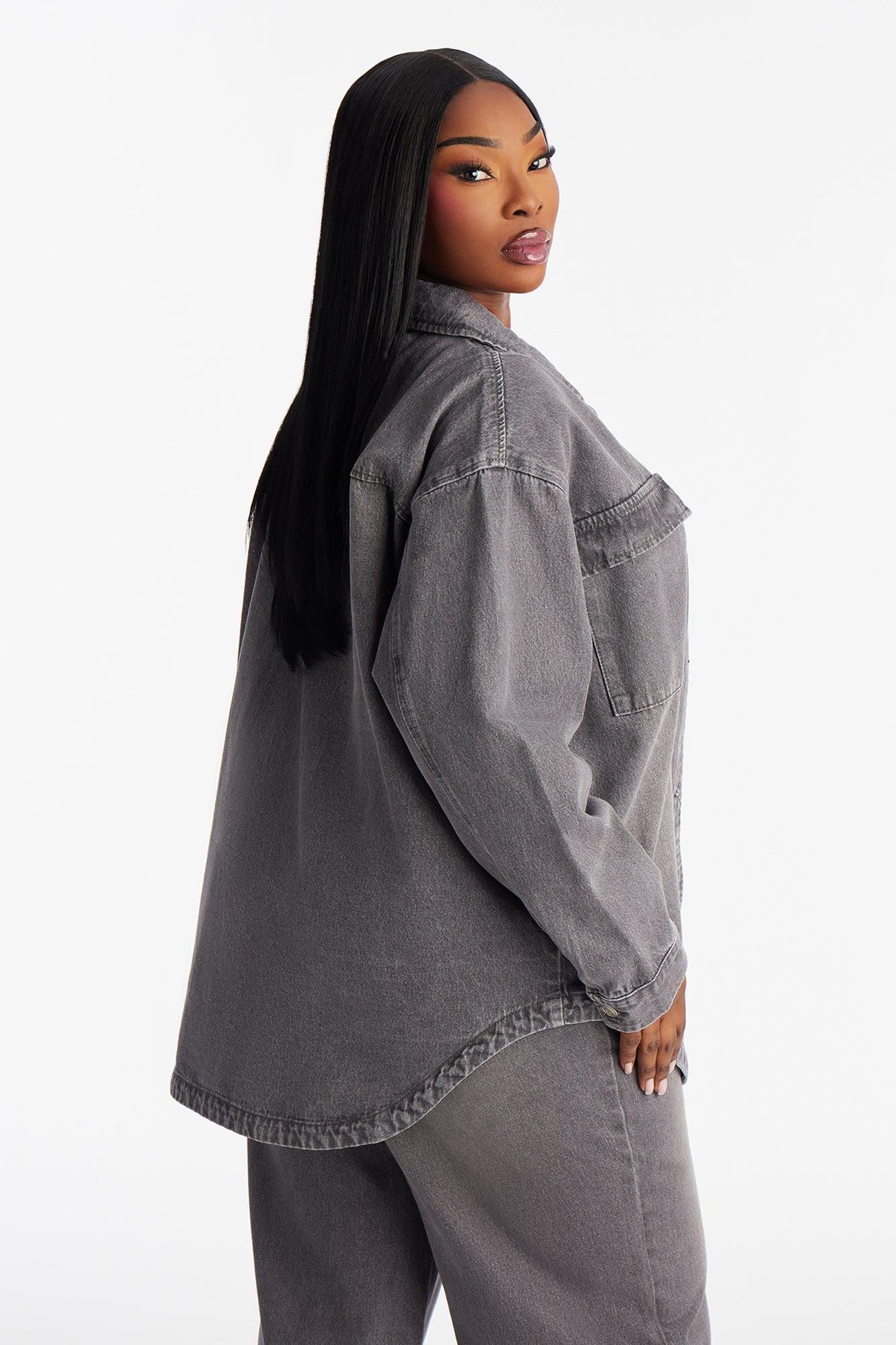 Available In Grey. Pair With Most Unfettered Wide Leg Jean Denim Shacket Oversized Fit Long Sleeve Collar Button Closure Chest Pockets Non Stretch Disclaimer: Due To The Specialized Wash, Each Garment Is Unique. 70% Cotton 16% Polyester 14% Viscose Imported California Proposition 65WARNING: Cancer and Reproductive Harm - www.P65Warnings.ca.gov.