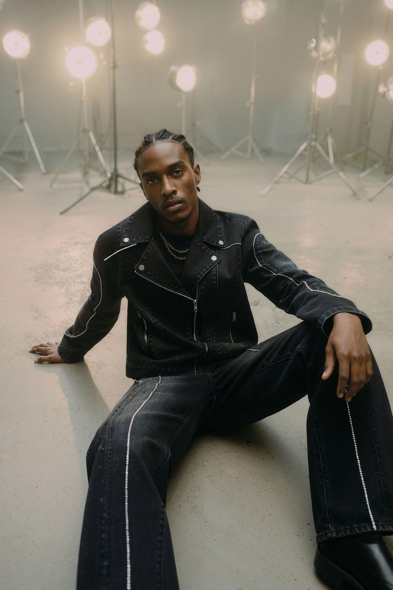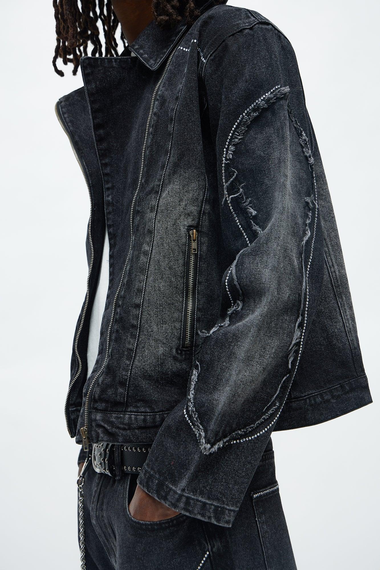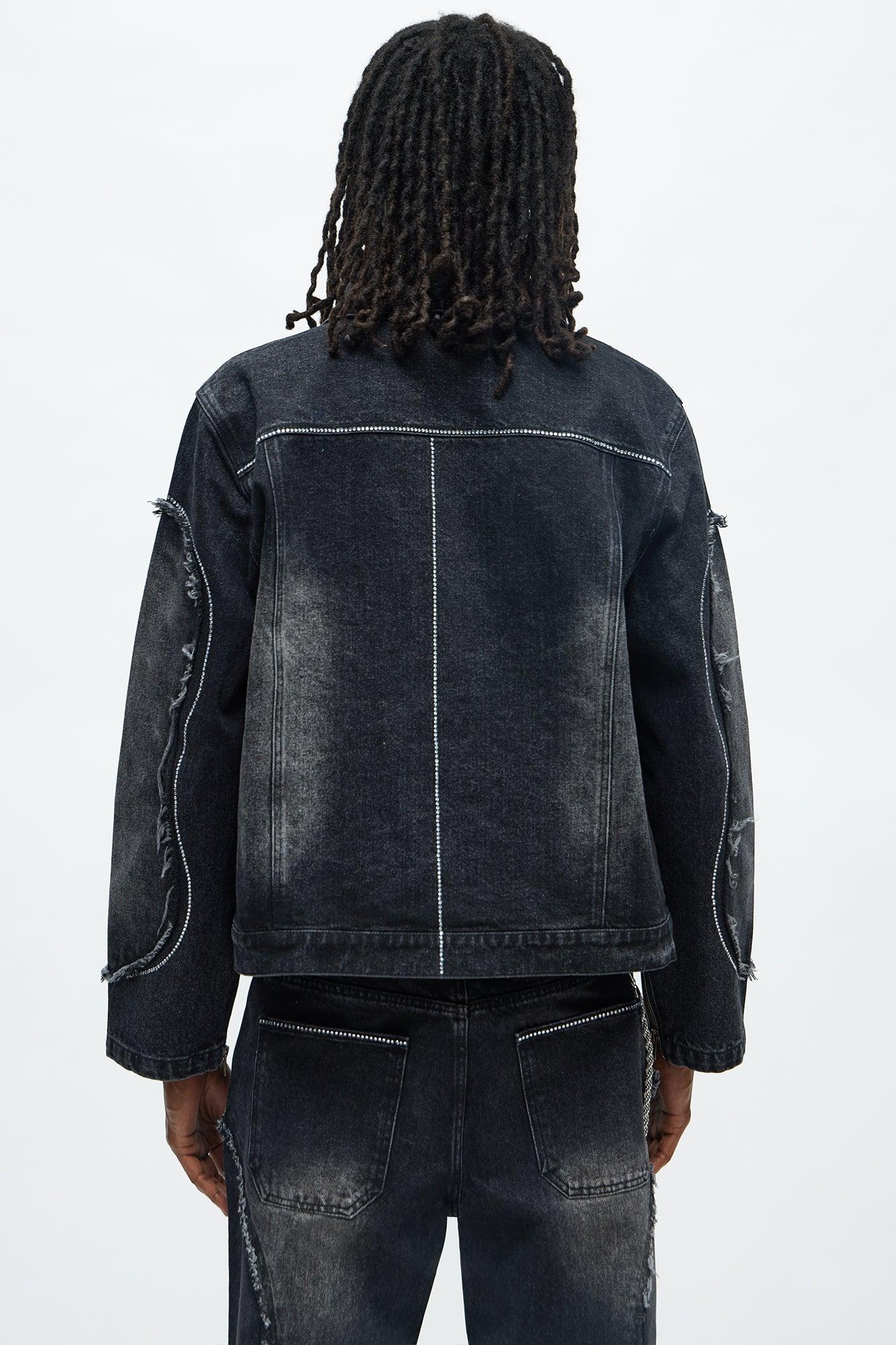 Available In Black Wash. Moto Jacket Zipper Closure Jeweled Detail Side Hand Pockets Long Sleeve Pair With "Straight Been Down Jeweled Jean" Disclaimer: Due To The Specialized Distressing & Wash Process, Each Garment Is Unique. Self : 65% Cotton 35% Polyester Imported