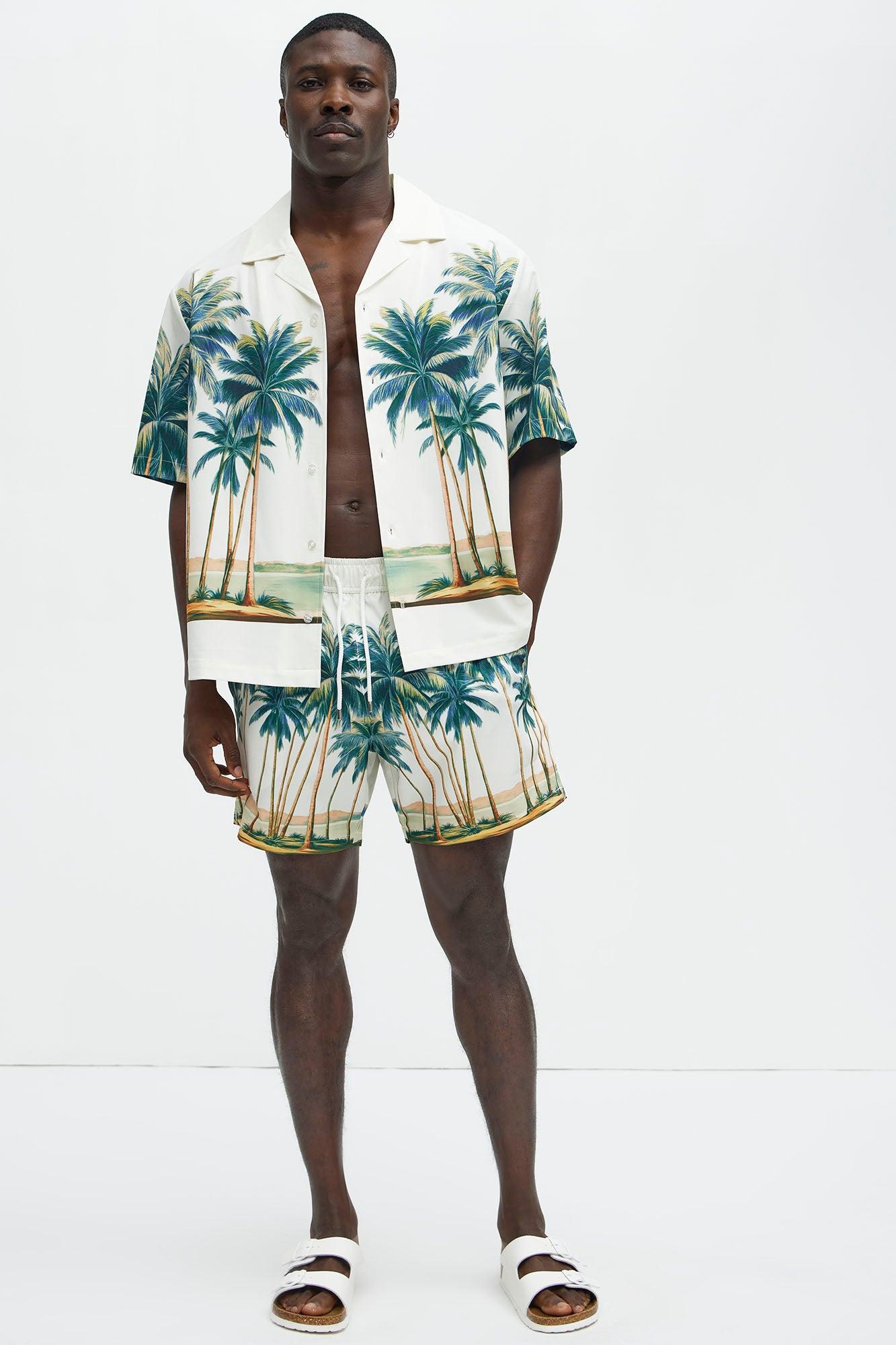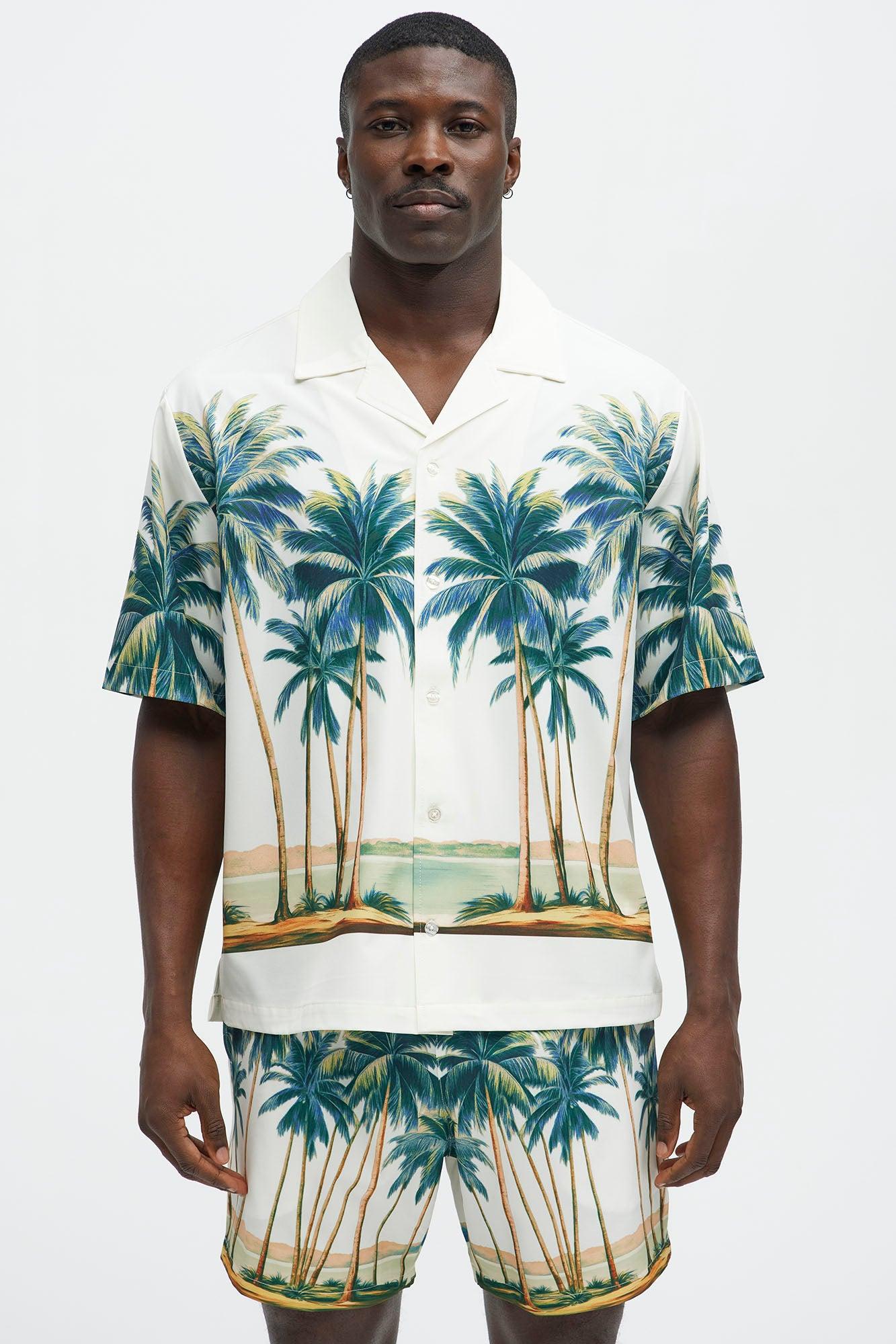 Moulay Palm Printed Cuban Shirt - Cream/combo