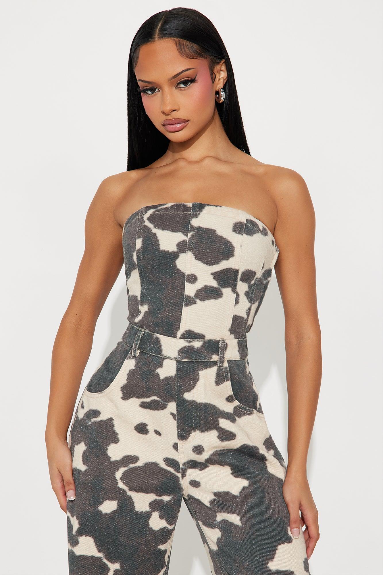 Move It Strapless Jumpsuit - Brown Combo Female