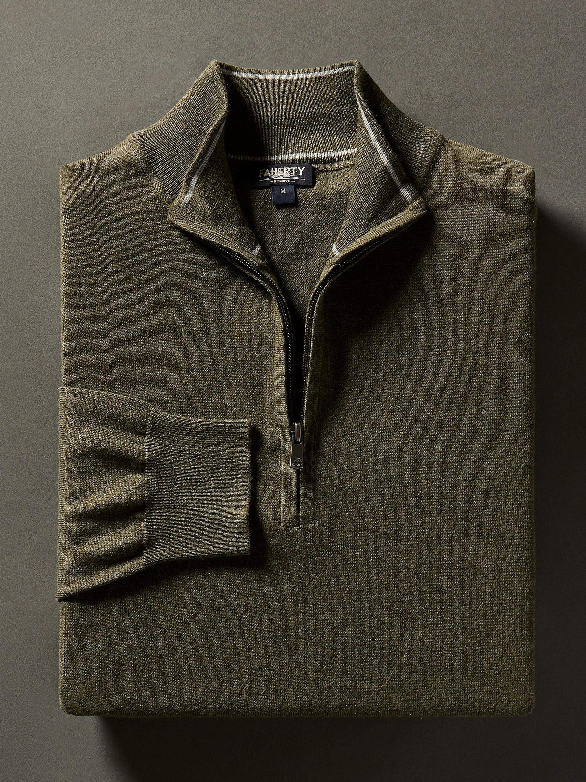 Part of our Movement™ collection, this quarter-zip is an essential addition made from our custom-developed cotton and COOLMAX® blend performance fabric. Super soft and stretchy, yet won't ever lose its shape. Whether you're on the move or at ease, this is the ultimate pullover that balances comfort and polish. Fit: Classic quarter-zip fit - designed for layering. Detail: Fully knit sweater construction. Fashioning at armholes and collar. Rib stitch at collar, cuffs, and hem. Contrast color tipping at interior of collar. Material: 55% Cotton, 45% COOLMAX® EcoMade Polyester; 95% Organic Cotton, 5% Cashmere Interior Collar Stripes; Elastane Collar, Cuff & Hem Ribbing; Antique Nickel Zipper at Center front Care: Hand wash cold with like colors. Do not bleach. Lay flat to dry. Cool iron if needed. Dry cleanable. MYS2402-ORT