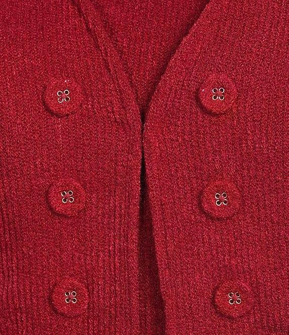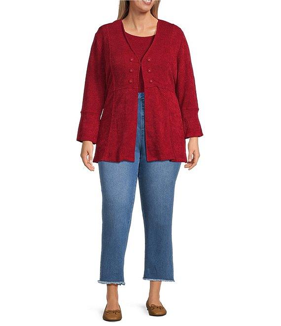 From Multiples Plus, this cardigan features: Jacket: Knit fabrication Fit & flare silhouette 3/4 flounce sleeves with button detail Three non-functional buttons on each side Raw edge seam detail Flare hem Hook and eye closure Approx. 31" length Polyester/rayon/spandex Machine wash/tumble dry low Tank: Knit fabrication Boat neckline Sleeveless Fitted Straight hemline with side vents Pullover construction Approx. 27" length Polyester/rayon/spandex Machine wash/tumble dry low Imported.