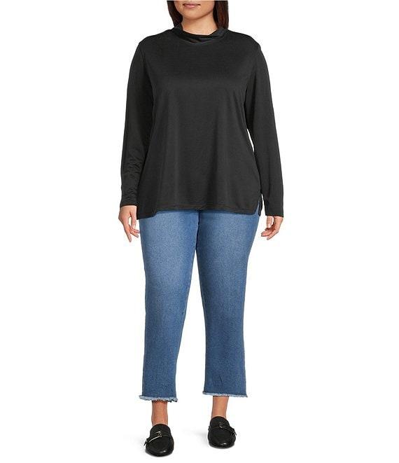 Multiples Plus Size Knit Mock Neck Long Sleeve Popover Top