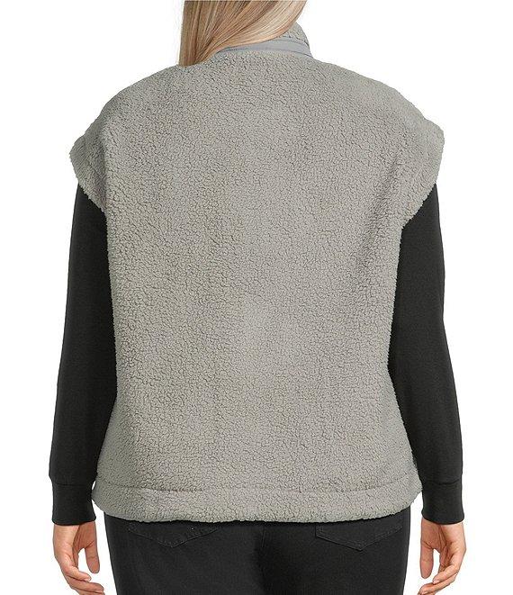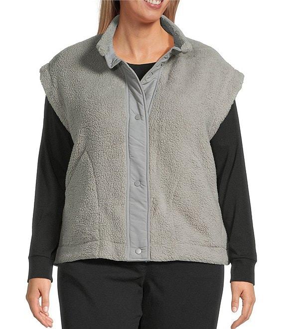 Multiples Plus Size Woven Stand Collar Sleeveless Snap-Front Fitted Vest